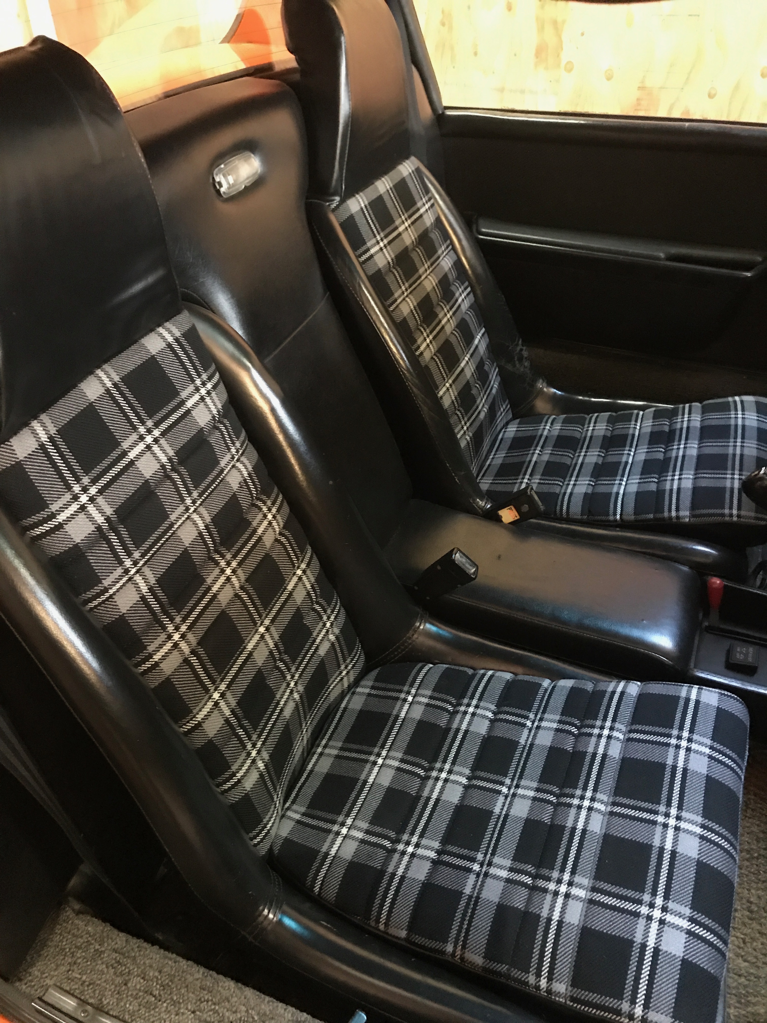 Well Mark (Mikey914 in this thread) has a bunch of the plaid seat recovering kits on his website. Not sure the color of your car but the plaid/tartan was definitely available in various colors on the 75/76 models. So you’d kinda have the best of both worlds. Cooler butt time and period correct. Heck, I can’t remember for sure but they might be more than just ‘period correct’. They might be the exact patterns used by Porsche in 75/76, can’t remember. Mikey?