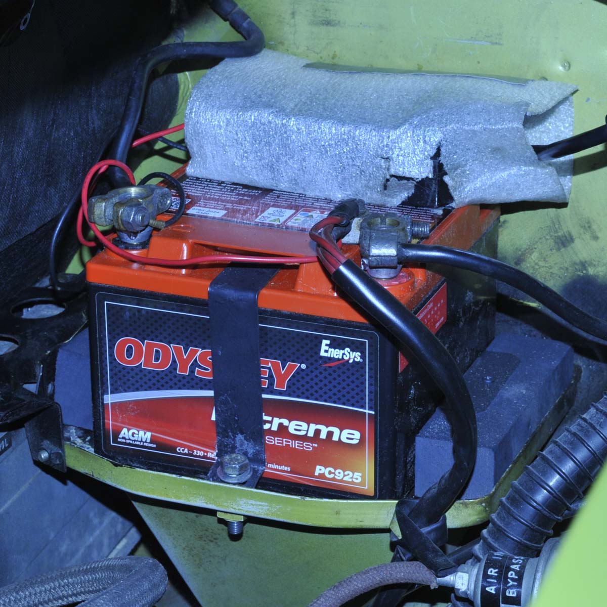 Here is the new Odyssey I installed yesterday, much smaller that the Optima it replaced. I made wooden blocks to keep the battery from moving laterally, and a steel strap down that I will improve later. The object wrapped in white foam on the top is the trickle charger that stays in place. I'm not pleased with the battery posts because they're too short, and will upgrade when I find suitable replacements. Attached thumbnail(s) |