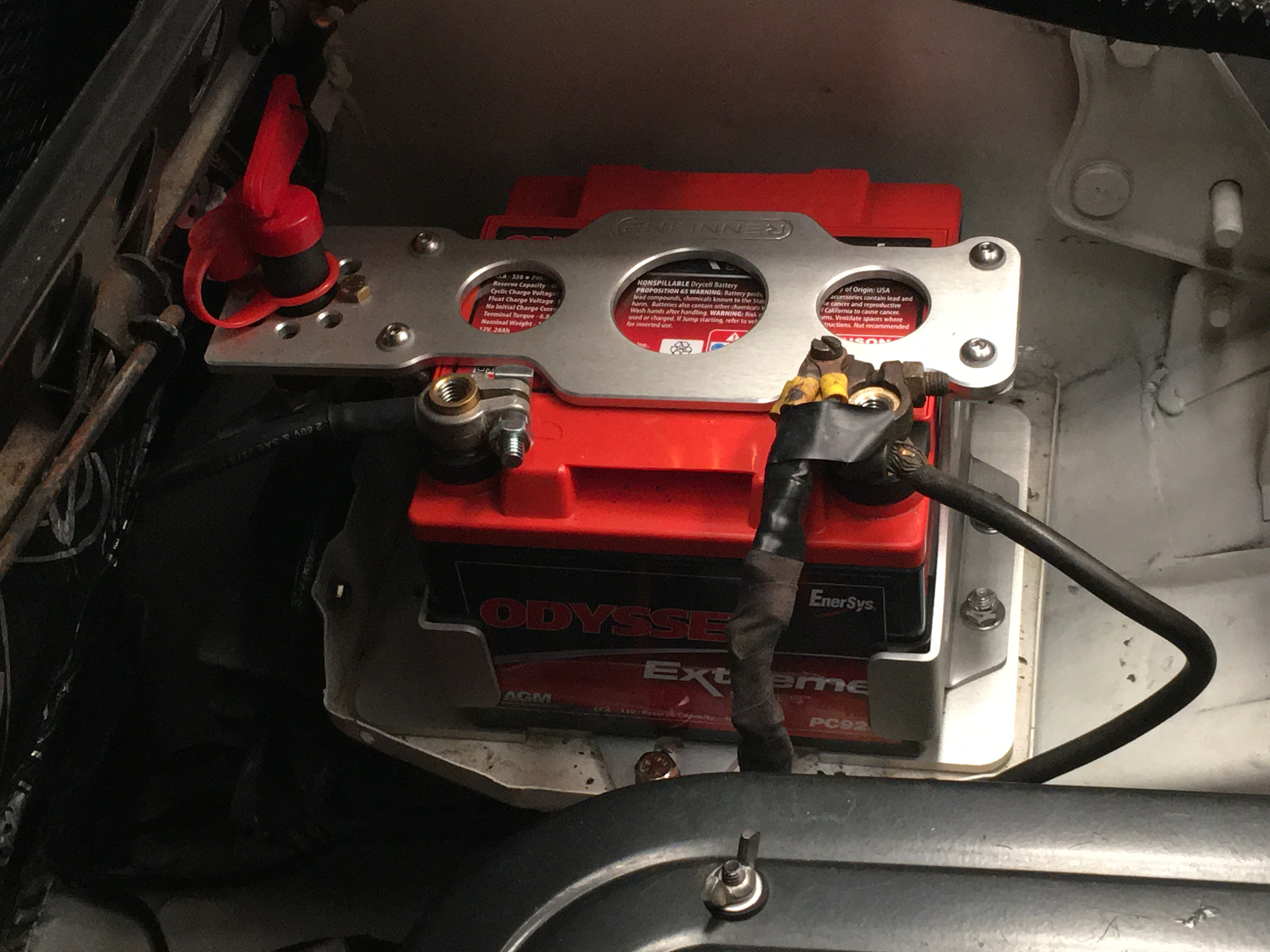 My PC680 came with those terminals. I bought mine from Summit. @Mark Henry - how much for that PC680 mount? I'd like one for my 6 conversion plz (IMG:style_emoticons/default/biggrin.gif) It's hand made, if there was a market I'd make them, but I'd need at least 20 to get the price under $100. It's basically 4 sides of an aluminum box and a couple of blocks, it sits on top of and hooks into the OE hold down, then uses the factory hold down bolt. Odyseey makes SAE terminals for $10. This is what I bought and there's plenty of room to properly seat the cables. ![]() https://www.odysseybattery.com/products/sae-terminal-kit/ I looked at these on the Odyssey site, but don't know how they are fastened to the battery? There isn't any info about how they are installed on the battery screw connectors of the PC625. I just checked the 680 isn't a flat top, it has the same indents as the 925. I'm using the same terminals as in the the pic, the block on the bottoms gets the terminal bottom flush with the battery top. But note mine are different bolting as they have inset hex socket bolts and I don't remember the terminals being threaded, just the battery. |