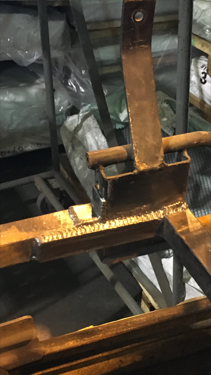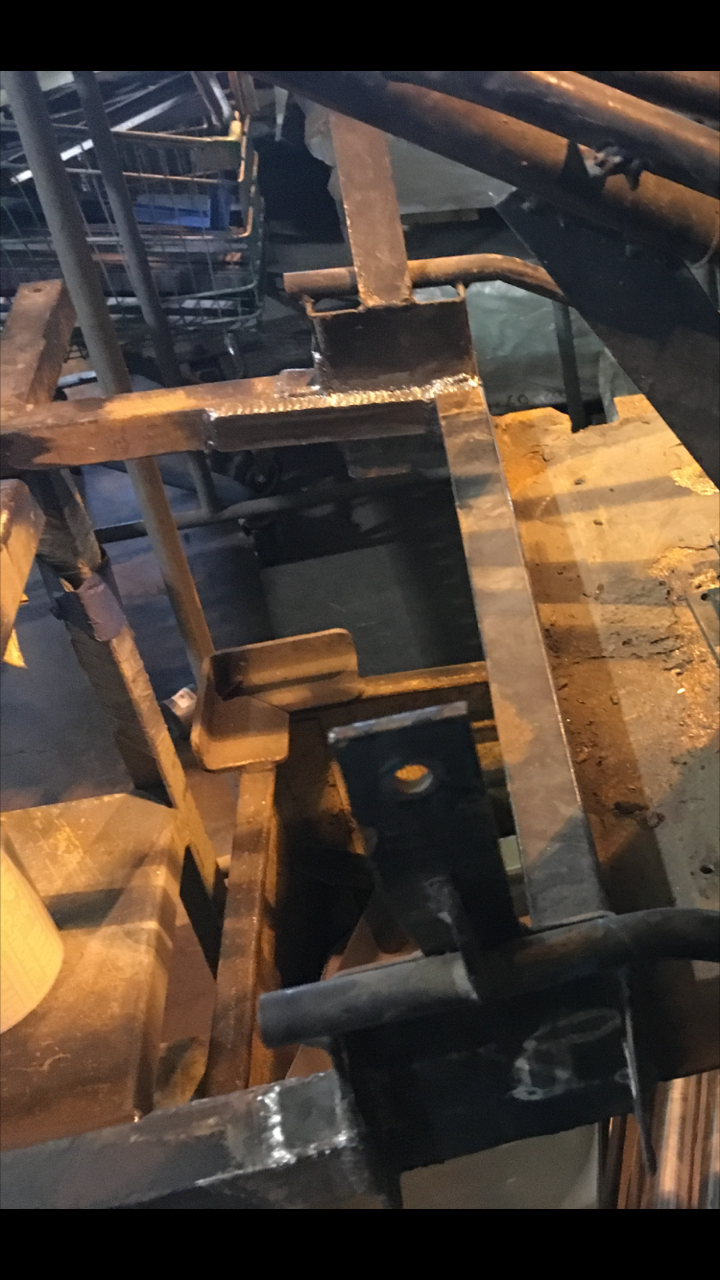 Had to pull the frame from a friends shop because he was too busy. Had one of my shop welders work for me after work hours and get the front section reattached. Butt welded 1" square tubing not the strongest. Put some strap pieces on the inside and outside. Also removed the differential unit and can now get it off to sandblasting and powder coat. Can't wait to get I back.