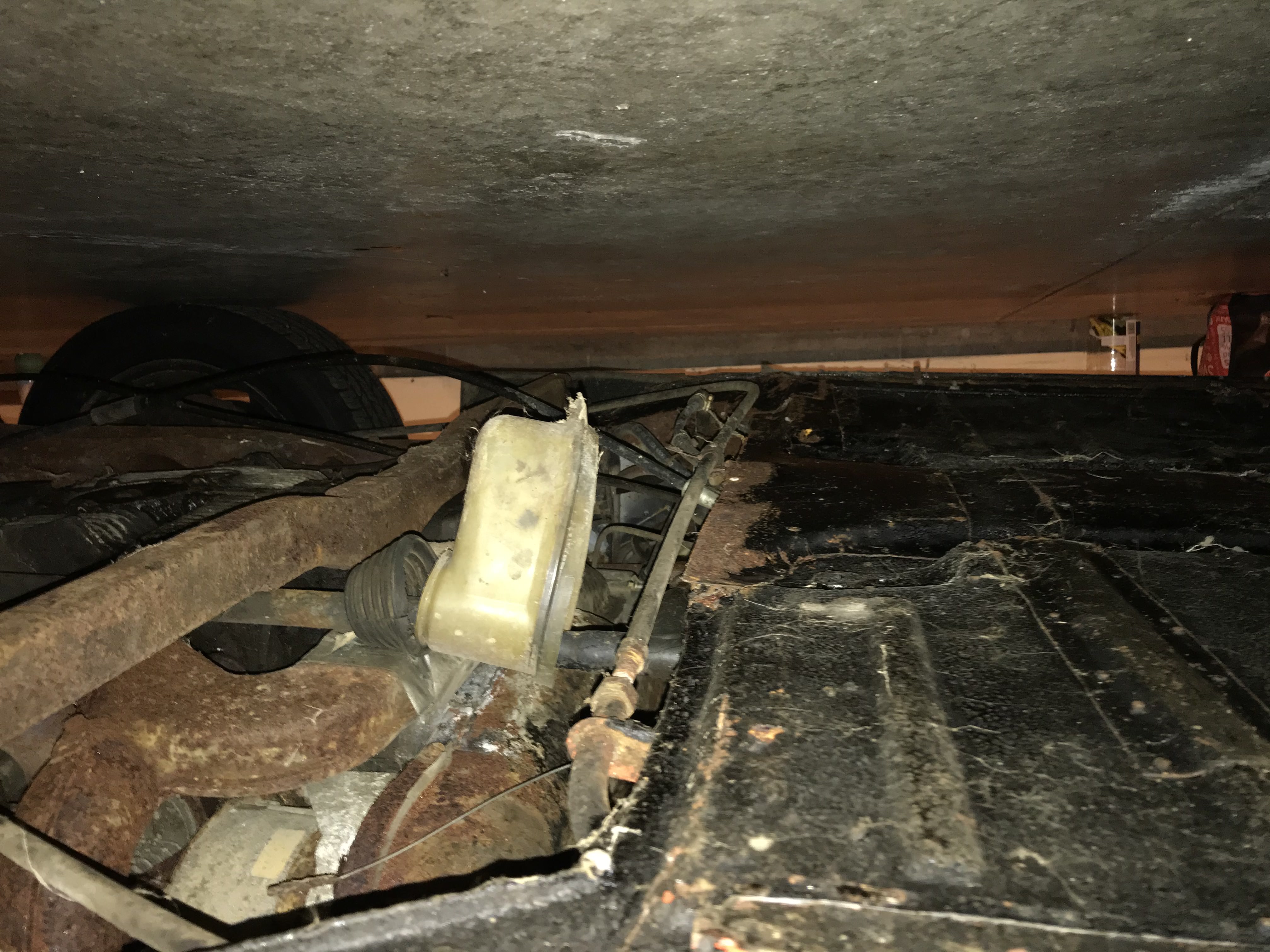 Hi all, thought'd I'd share my continuing progress on my college 914 project. I was able to get a better look underneath the car and poked around with a screwdriver, the rust looks to be mostly surface. I got the calipers off, they are def worn out and need a rebuild.