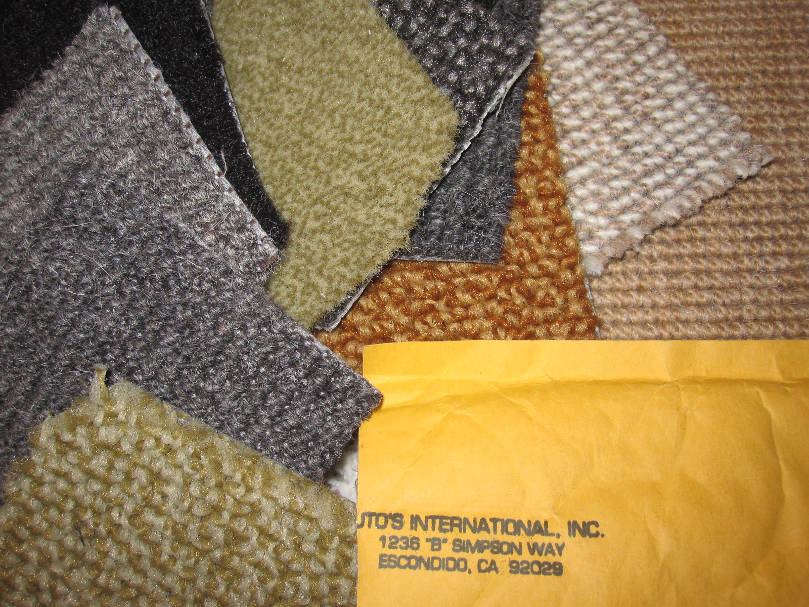 the best place to look for unfaded sample, if original carpet still in car, is where the carpet was tucked behind the speaker covers. if you were after something original looking i'd be checking out mercedes benz sources. i think this stuff might have went into top end vws like the 412 and karmann ghias. i don't think this carpet material went into 911s but i could be wrong. |