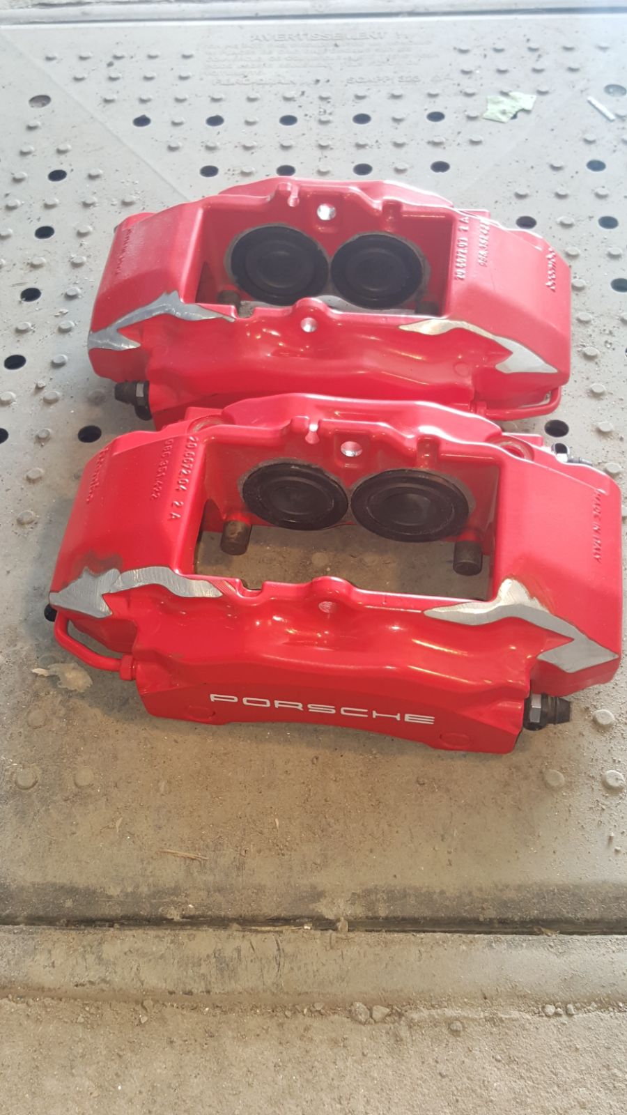 Correct on front setup. You need the hubs and brackets. You can get some nice screw in studs from BMW shops or 034 motorsports. Correct on rear setup, you'd just need the radial adapters. The 914 hub will accommodate the Cayman caliper without any work. Note you lose the parking brake. I have this setup on my car (vw) with 19mm master and works well. It's been on there for over a decade. I'd suggest maybe a slightly bigger master (20.6) if you want a really tall pedal , but I've left good enough alone. On 16 fuchs the calipers need a little massaging, and maybe a slight spacer 5mm unless you have the 951 Fuchs. Pic of massaging here: In general you need 16" wheels. Some 15s fit (mainly the spare tire alloys such as 928/993 15" spare or 951 spare Thanks Lanner |