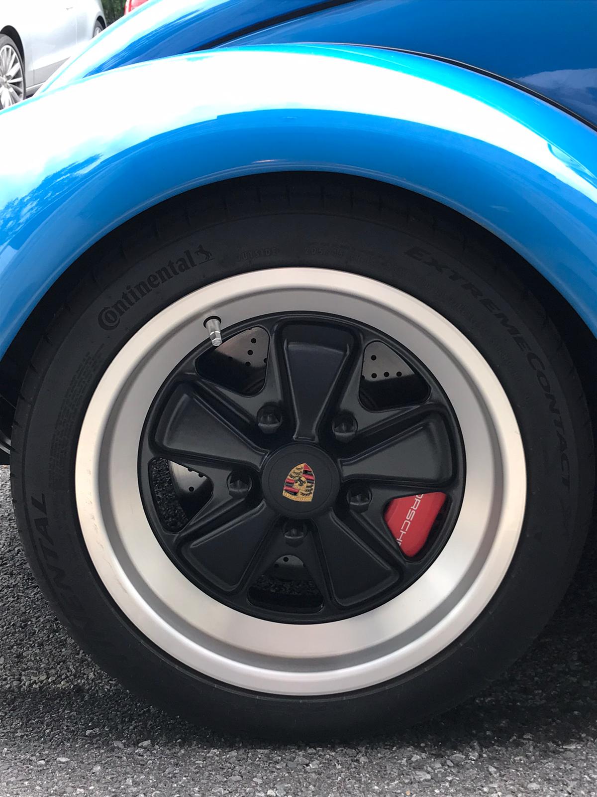 Hi guys, My name is Lanner. I built this setup. It uses new iron hubs with radial brackets for use with stock 914 spindles. Bearings and wheel seals are stock 914 and it's bolt on. It's a good option that doesn't require swapping out to 911 suspension. Please let me know if you have any questions about the setup. Thanks Lanner i do have a couple questions, since i have 5-lug fuchs(16") , but used the stock rotor and brakes in front with the rotor redrilled and new lugs pressed into the rotor, so currently i have all stock set up, but i do have 19mm 911 master cylinder, so my question is this: for my front if i converted over to this set up , what would i require? The boxster caliper and rotor, and the hub and spacer mounting blocks, is that it? and then source the new studs?(i want to use nuts not lug bolts) @Lanner @djway also fyi i have 914/6 5 lug hubs on rear so just using the stock caliper with stock 4 lug solid rotor drilled for 5 lug(PMB), so for rear i would just maintain my current set up , or, if i wanted the rear boxster caliper would i just get the new rotor and caliper and mount with adaptor block? seems the new rotor would just slide right on my current rear hub but new caliper with spacer would be required, OR a 914-6 or M caliper could be used too? Phillip - this looks like a great solution for putting big brakes on a car but I would hesitate to say it’s the solution for every car. I would put a Carrera rotor next to your stock rotor and check the weight difference then X 4 for the car. Adding pounds of unsprung weight to a narrow body four will affect acceleration and handling. Everything is a trade off and it really depends what you are trying to achieve. We did the Boxster caliper, Carrera rotor upgrade on a lot of 911’s that got 3.2 or 3.6 engines. It’s a nice upgrade from M calipers. S calipers have 3.5” spacing and are different from Boxster caliper spacing. Dr Phil, Correct on front setup. You need the hubs and brackets. You can get some nice screw in studs from BMW shops or 034 motorsports. Correct on rear setup, you'd just need the radial adapters. The 914 hub will accommodate the Cayman caliper without any work. Note you lose the parking brake. I have this setup on my car (vw) with 19mm master and works well. It's been on there for over a decade. I'd suggest maybe a slightly bigger master (20.6) if you want a really tall pedal , but I've left good enough alone. On 16 fuchs the calipers need a little massaging, and maybe a slight spacer 5mm unless you have the 951 Fuchs. Pic of massaging here: In general you need 16" wheels. Some 15s fit (mainly the spare tire alloys such as 928/993 15" spare or 951 spare Thanks Lanner Mark, @mepstein , good point, there is a lot to consider before just jumping into this but exciting to see this is an option. maybe a better lower weight option is the alloy calipers that PMB has could work using this hub and adaptor, again, saving weight and not having to swap out the whole suspension for 911 when i already have good new other components. Lanner, thanks for all the info and the pictures. i think you will get a lot of interest in this. Phil |