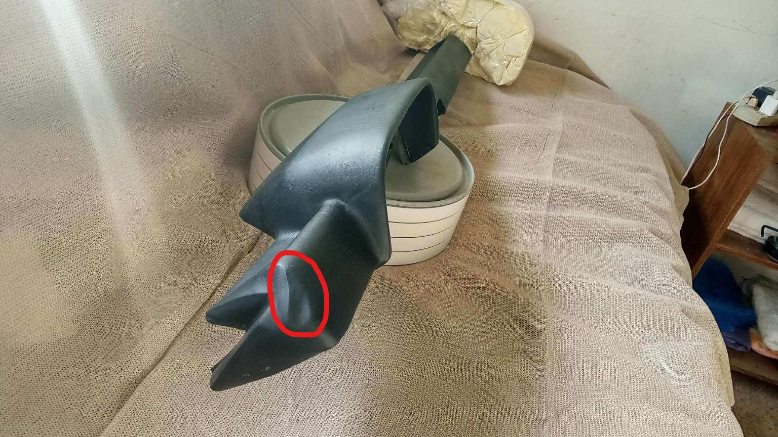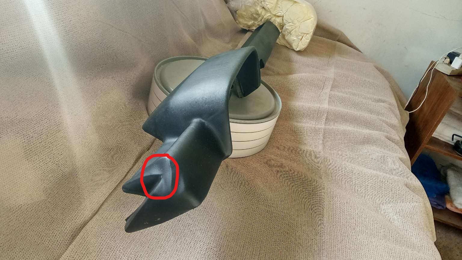 I have reached out to this seller and asked if he would send me additional photos of his dashpad. Below is one of the photos he sent me. There is a "dimple" on the driver side of the dashpad, next to the flat angled area where the A pillar trim is located. I have looked at a friend's NOS dashpad(also never installed) and my own dashpad and I don't see the dimple on either of ours. I circled the dimple in the last photo. Does anyone else have this dimple on their dashpad or could comment on it? Thanks! Where A pillar trim cuts across the dashpad The "dimple" |