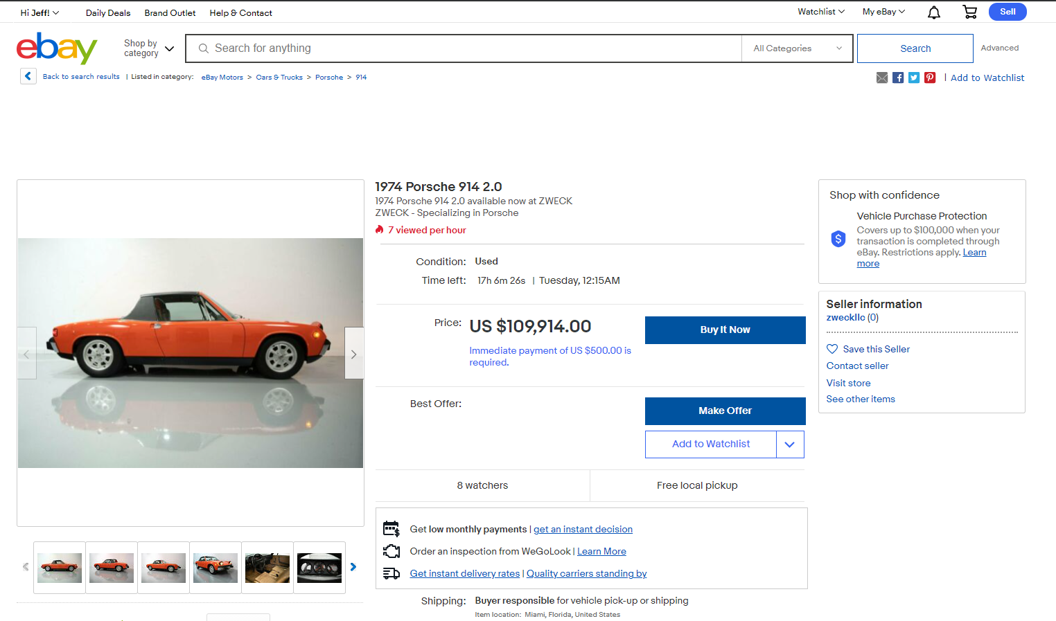 Wow. There might be cleaner more original lower mileage cars out there somewhere but this one has to be in the top 10. I wonder what they paid “the old lady” for it!?!? Not what they should have paid her you can bet, but I'm sure she is happy, just not as happy as the buyers. I don't see it bringing $96.5k on eBay, or Bat or P-Car, B-J or Mecum or whatever auction. I don't believe a plain old every day 914/4 has ever brought that at public auction and I doubt it at private sales even more. |