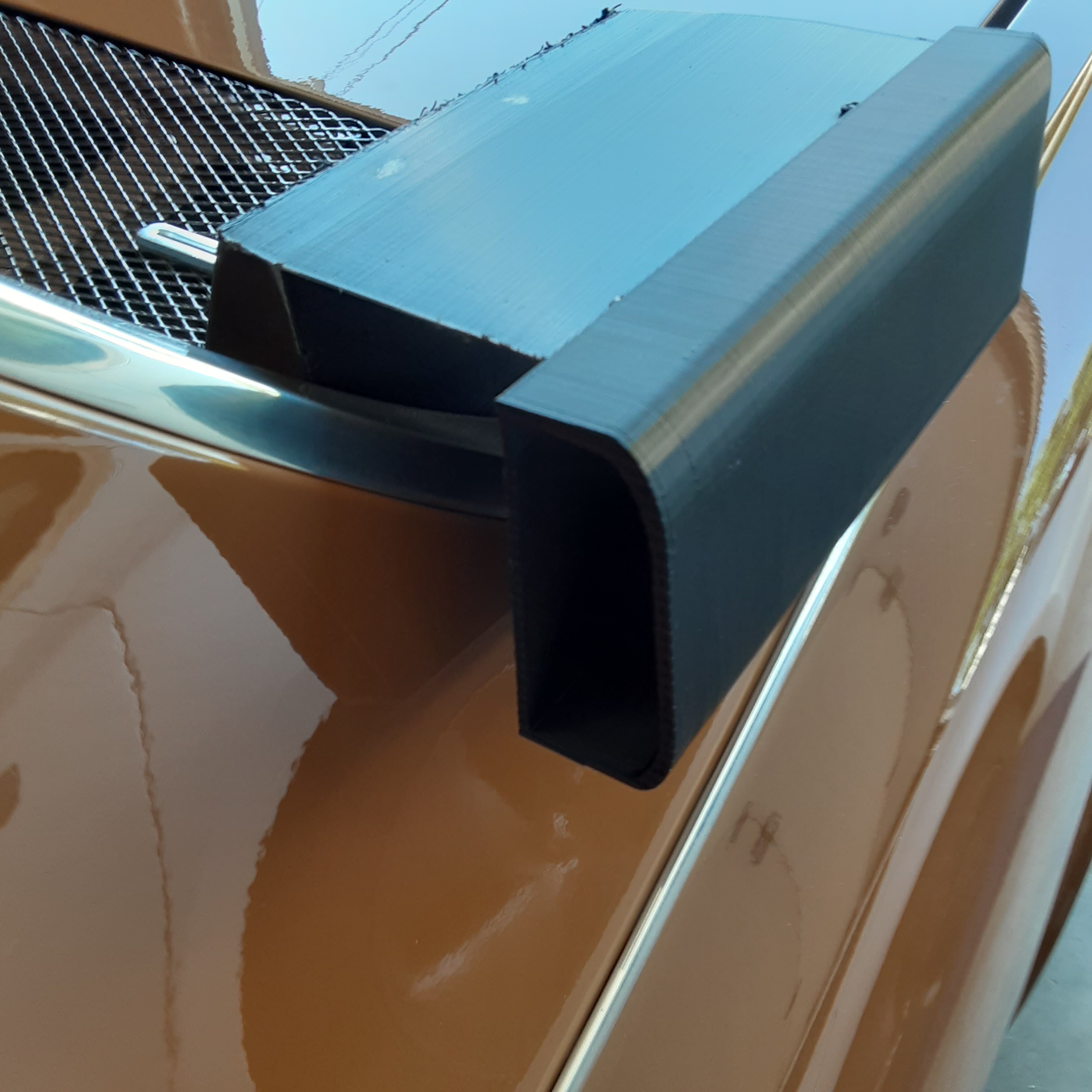 So don't laugh too hard at the pictures (IMG:style_emoticons/default/av-943.gif) It's a first pass attempt. I did a couple of runs on my normal joy ride and am qualitatively seeing about a 5 to 10 degree head temp reduction and quicker cooling to normal temps after an uphill grade. Also cruising at 65mph in 5th I'm seeing about a 10 degree reduction in steady state temperature. I have a big hole in the back due to a 3D print problem and my duct tape keeps on flying loose so not getting full duct air. I just have a VDO head temp gauge on #3 plug. As many of you know the VDO has 50 degree hash marks; so not real accurate reads. So is it correct that head temps are not affected by outside air temp, that's an oil temp thing? Has anyone tried this? The stock grating is still in place. Can I be doing any harm? |