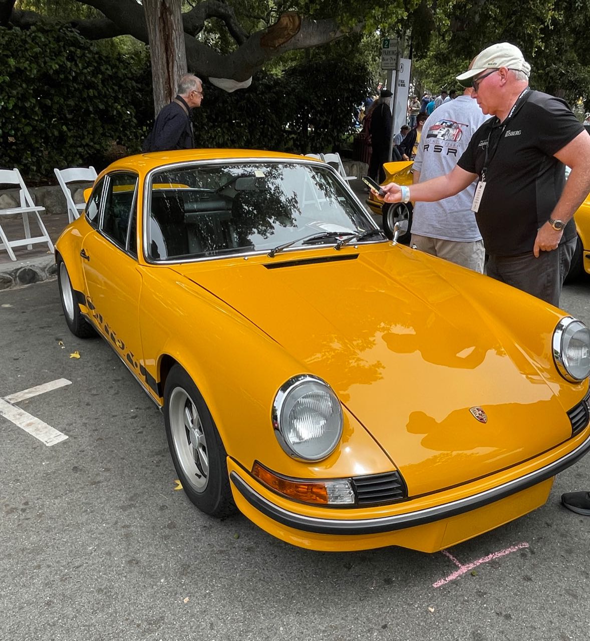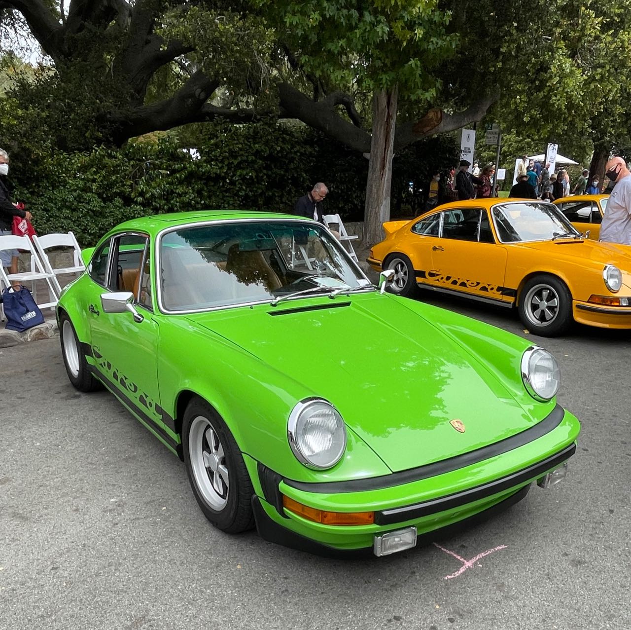 Hey Michael, sorry to have missed you when you snapped that pic of my lime green 74 Carrera. My youngest daughter and I had a blast being a participant in this great event that day and were thrilled to learn as they directed us to our assigned parking space that we would be placed on Ocean Ave at the end cap of one of the first blocks next to the two signal yellow 73 RS’s.