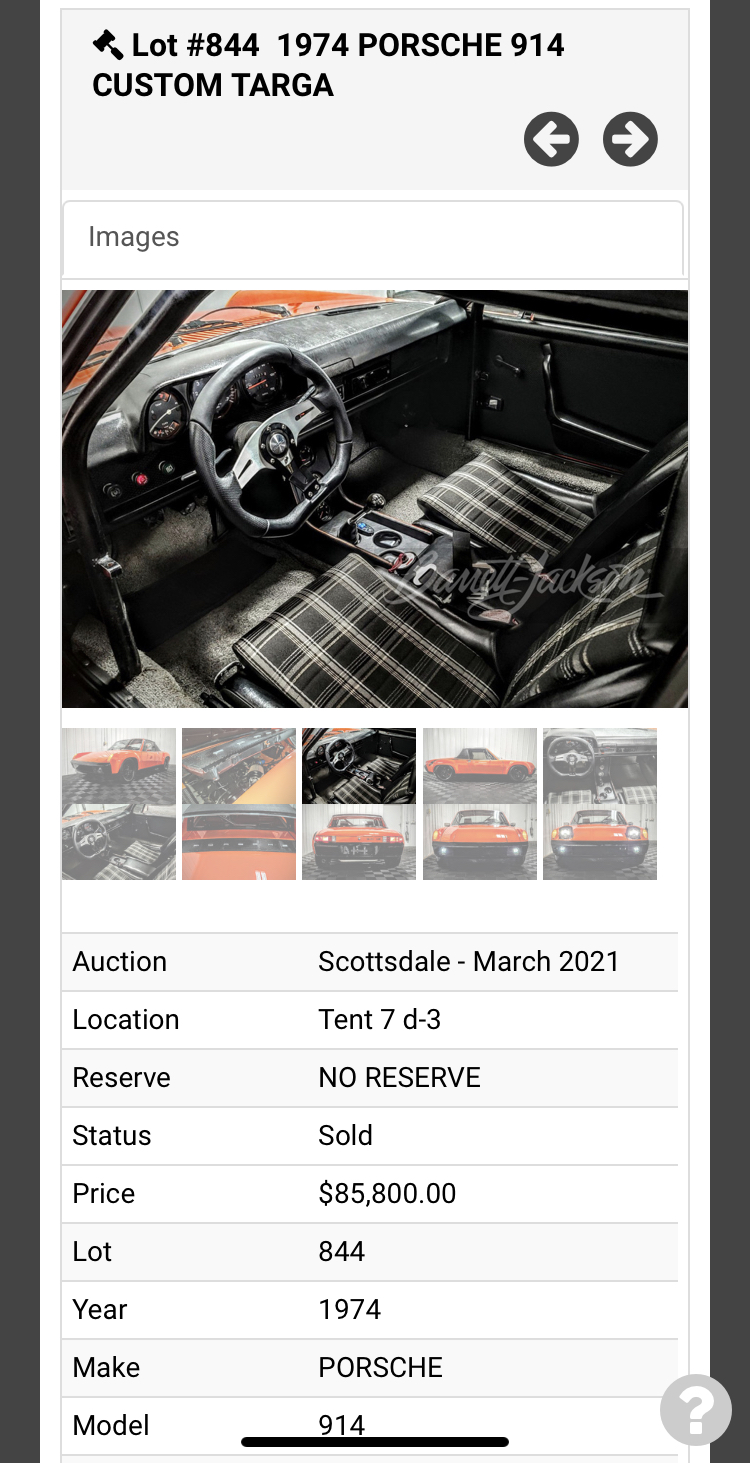 and then this: https://www.throddal.com/details/1974/porsc...ahut8db6u4.html Status: Featured at Barrett Jackson [2020 Fall Auction Scottsdale 2020] and Sold for $20,900 on 10-22-2020. |
