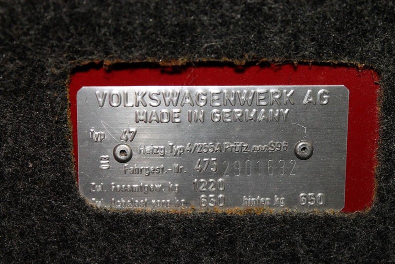 What to make of this label? Now that's a funny one, I've had that in my database of 914s with odd VIN or Chassis number for one reason or another. I found this question on Pelican: "I'm considering a 1975 914 in Burgundy with a cream interior being sold by a car dealer in Syosset NY. It's a 1.7 liter and a beauty with only 17,567 miles on it. The interior is all original. Virtually no wear. I haven't seen it in person but the extensive pictures show no rust. the vin is 4752901632. The car was repainted it's original color at some point, but it was a quality job so it looks factory." Obviously should not be a 1.7 liter, most likely a 1.8L, but just a coincidence that you posted that one. The "9" is a little funky in the VIN, 1 too many dots? Here are more pics including VIN and Chassis tag of 1632: (IMG:http://www.914world.com/bbs2/uploads_offsite/cdn.dealeraccelerate.com-25305-1647381820.1.jpg)(IMG:http://www.914world.com/bbs2/uploads_offsite/cdn.dealeraccelerate.com-25305-1647381820.2.jpg)(IMG:http://www.914world.com/bbs2/uploads_offsite/cdn.dealeraccelerate.com-25305-1647381820.3.jpg)(IMG:http://www.914world.com/bbs2/uploads_offsite/cdn.dealeraccelerate.com-25305-1647381820.4.jpg) sometimes its helpful to look further across the VW range, answers to some of these questions can be found there. for instance the vin label jeff points to used for a short period of time from davep's collection. out there may well be buses and beetles from the same months with a similar sticker. you are not necessarily going to find it on porsches - ie 911s. they are not built by VW. that karmann number though sure is interesting @MCShack . |