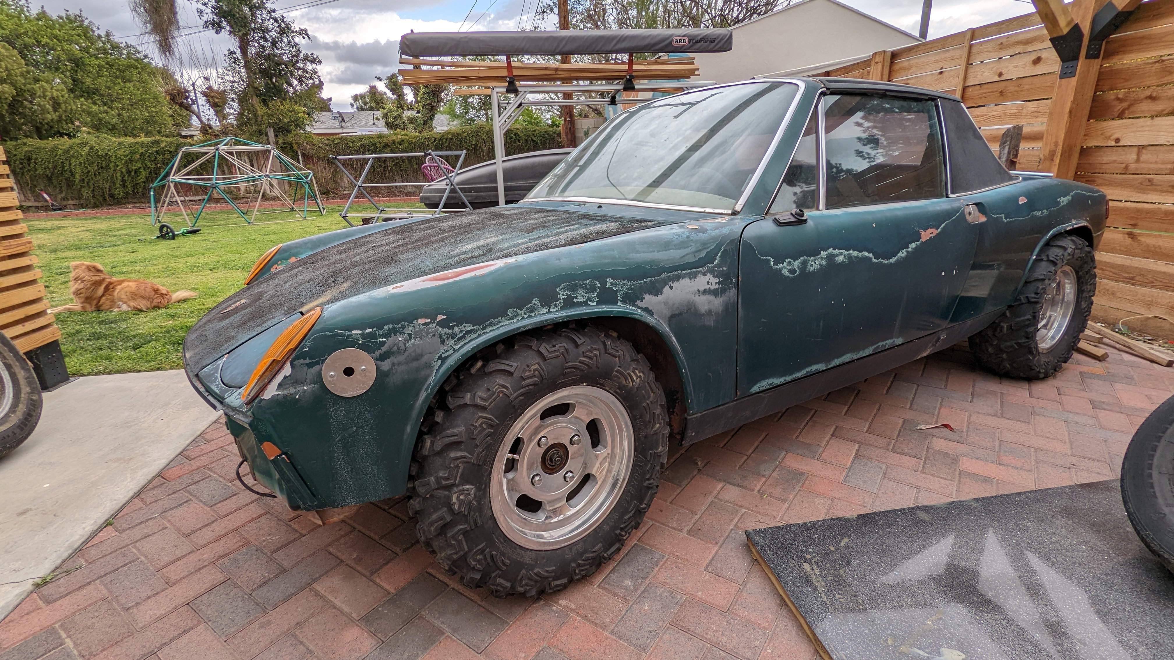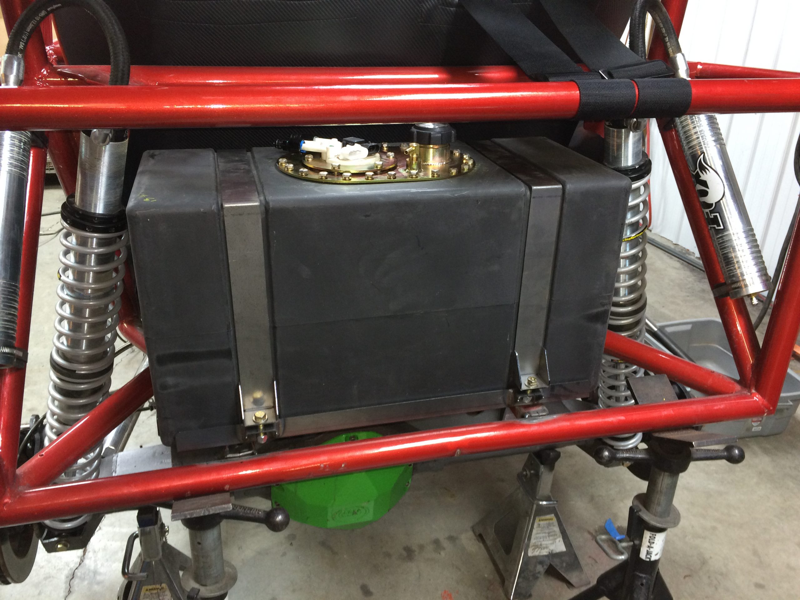 Last time I parked my '75 2.0 to restore the front suspension, it was running relatively fine. As usual, a simple task estimated to take a few weeks turned into months, due to lack of time & budget. A few months go by and I notice the interior is flooded in gas, thankfully the car had no carpets and nothing caught fire. I did my research and diagnosed the leak came from the plastic fuel lines that go through the tunnel; simple enough, I'll replace them with SS lines. I go ahead and clear the interior of any remaining fuel; drain the rest of the gas tank, only to notice the horrible condition it's in; chunks of rust coming out of it. Now I not only have to replace the fuel lines but I also have to either restore the tank or replace it (dansk tank $230 plus SS line $170). My goal with this car is to turn it into a baja inspired 914; and since I don't really care about "originality", I wondered: what if I replaced it with a universal fuel tank used by dune buggies/prerunners (Jaz, RCI, etc) and placed it in the rear trunk? They seem to be easy to find secondhand and not so expensive. I started looking into it and noticed obviously 914 racecars have "fuel cells" but they all kept them in the front. This is a list of pros & cons I came up with, and since it hasn't been done before I assume that it'll be a very unpopular inion, so please go ahead and talk me out of it since I'm biased and can only think of reasons to actually do it. Pros: No fuel lines running through tunnel = simpler system & shorter lines. Less or just as expensive for a unique or "custom" look, since I've never seen it done before. Shifts weight to the rear, which is better for my application Cons: Safety? Rear suspension is being reinforced so the tank could be protected by the cage I'll build around it in case of a rear end accident, but the fact that it's closer to the engine and hot temperatures might be a bigger issue. Anything else I might not be considering? Has someone seen it done before? If so, please share pictures/info. Picture of how it sits right now with UTV tires, for reference: Picture of what I'm thinking of maybe doing: ![]() |