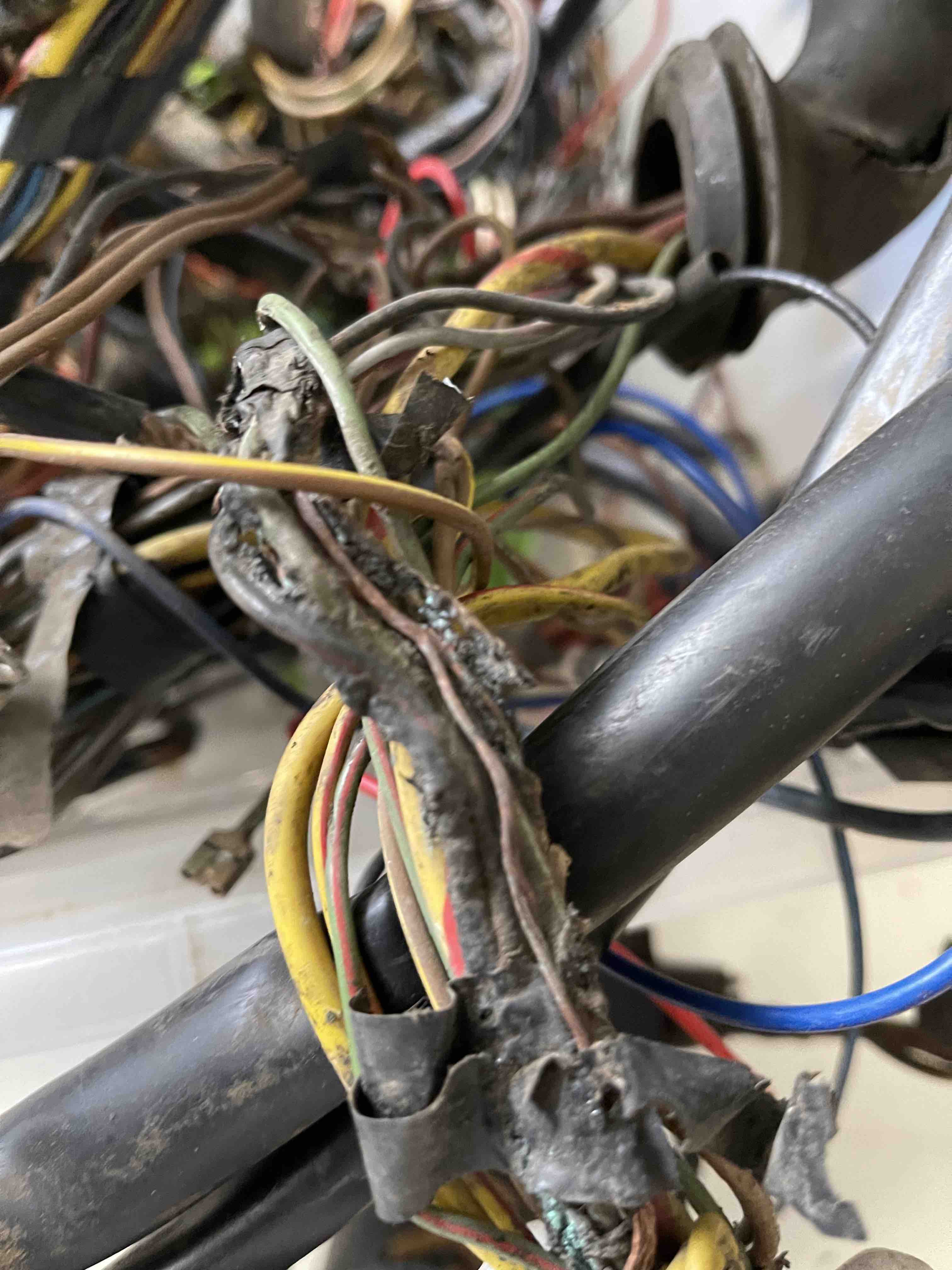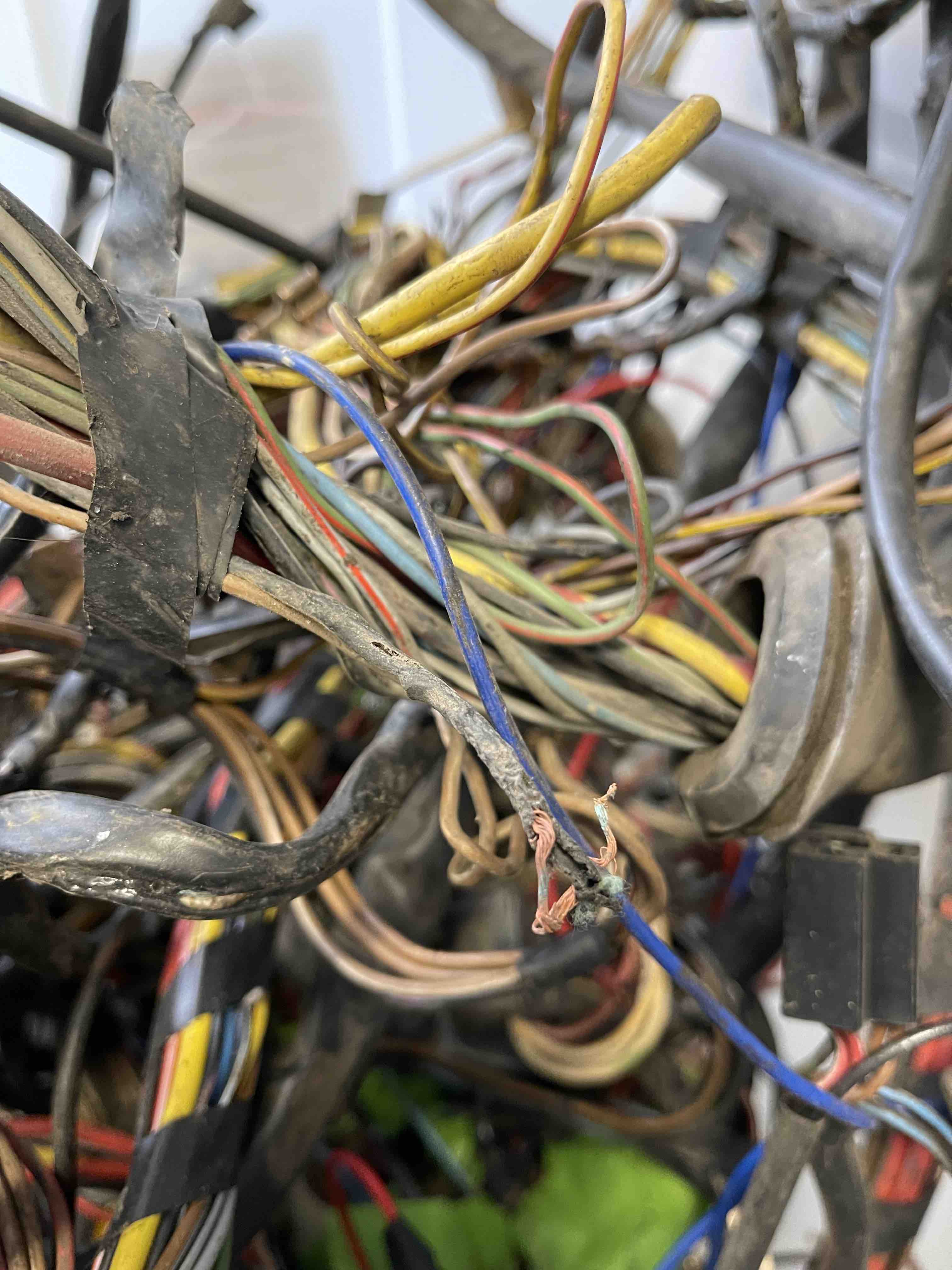 I just removed the wiring harness from my '75. I am not sure what the PO did or what happened but there are a lot of shorts with melted and exposed wiring. The seat wiring is melted into a large uniform mess.