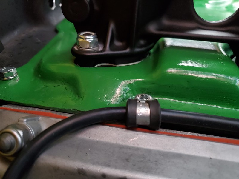 Nick with conversions I think it’s where that engine mount is situated. I have a Rich Johnson mount and it’s prolly a little different than other vendors and especially the factory. My 1,2,3 just kisses the rubber seal on the trunk. I actually used glycerin to let the “hats” slide by.