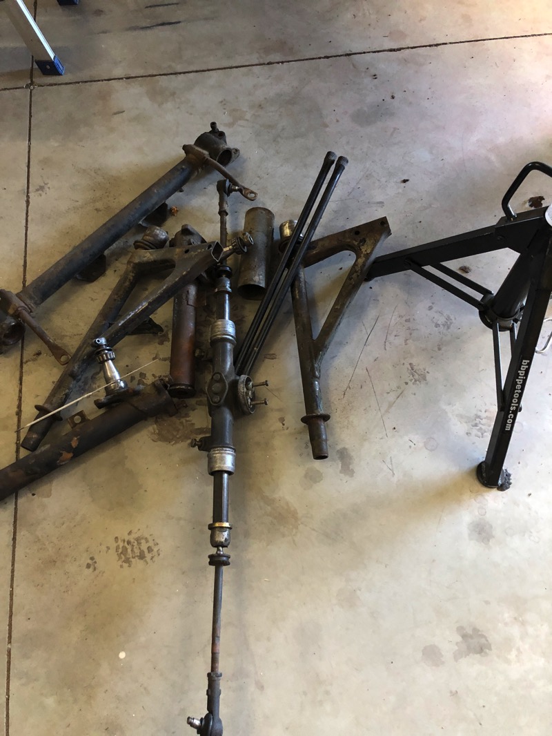 Also while working on the motor mounts Jeremy took apart the front end. Once it was all apart we realized none of the parts that he bought matched with what was taken off. It was at that point we realized it had been converted to a 911/912 frontend. Good thing he has a parts car. |