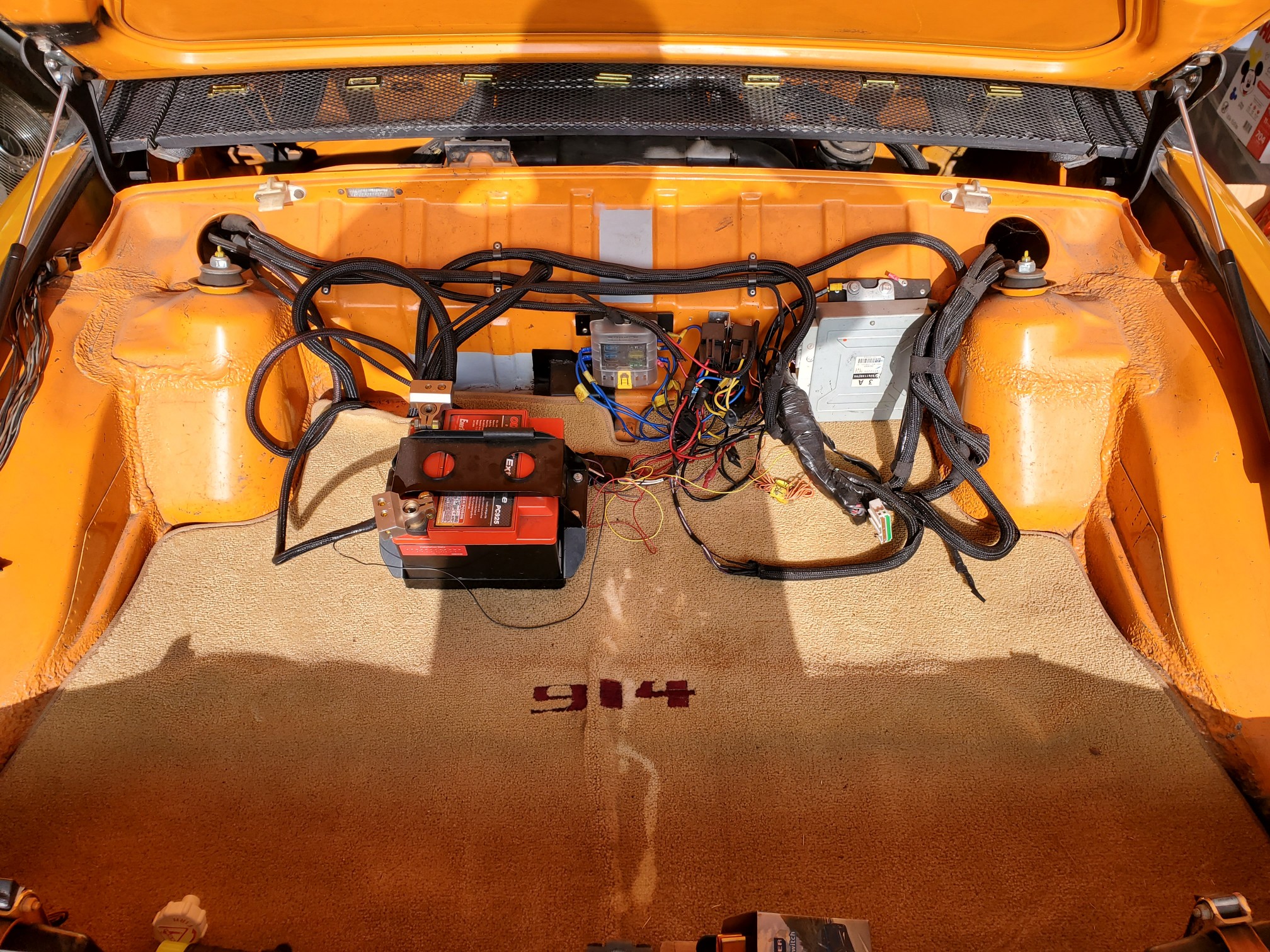I acquired this EZ30R conversion last year. Kent’s (76-914) @76-914 subaru conversion has always impressed me, so it’s his fault. Anyhow, 914 ran well but had an intermittent short that ate up batteries. I decided to paint the exterior of the car before tackling short. Once, painted, Noel and Bruce helped me one Sat with 5 lug conversion. My goal was to get the short figured out and move the harness and battery bank to the engine bay. Short of time, and my lack of Subaru knowledge I spoke with Outfront motorsports https://www.outfrontmotorsports.com/ into helping me get things right. ( And only 5 min from home) One week later I’m absolutely stunned on what they accomplished. Lots of upgrades to fuel and cooling systems, a new ECU wire harness relocated to engine bay. There is a detailed list of things I’m forgetting that I will post later. In a nut shell, Dyno shows 272 HP with 223HP to wheels. I got a test drive last night and I was totally floored. Super smooth and responsive. I can’t wait to pick it up this afternoon. Is this a typical HP range for this engine? Rev limited to 7500 rpm? Is this ok? Can’t wait to address trunk paint next. Your thoughts..photos coming. BTW…The new wire harness is now 75% smaller and tight…super professional Bonus, my rear trunk is free on any modifications or loose wiring. Your thoughts please Oscar 967] |