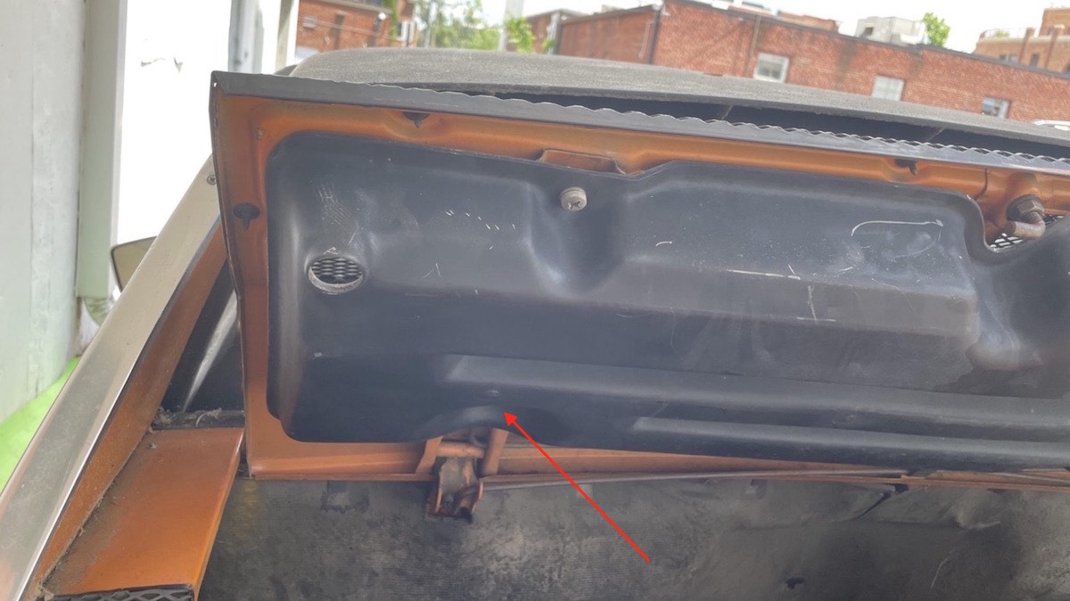@wonkipop Interesting! I couldn’t find anything either. All mine are screws with the same Phillips head but different finishes and lengths. No bolts, except as you noted those holding the rain funnels. Let’s see if any other 1.8 gurus have info. Probably either keep mine the way they are or replate the five that are bronze finished ( but only on the heads). Might (?) I have painted them in the past? The 80s were a bit of a blur….. (IMG:style_emoticons/default/dry.gif) had a scout through files from EC-A EC-B research. this is best i could do for a photo. its from a car that was sold on BAT about 6 months back that was down, but pretty unmolested. had all sorts of original stuff on it including recall sticker. reliable i would say. you can only see the screw retaining rain tray on truck lid edge. mine look similar to this. possibly were cadmium once but its oxidised. the bolt i am talking about being like rain funnel bolts is in the rear recess either side. where arrow points. nothing anywhere in my files had a clear view of it on any cars. its just recessed far enough it never appears visible on any photos. (IMG:style_emoticons/default/sad.gif) have drawn a blank there. logic tells me they should all be screws. but then again....we sure have found plenty of odd bits of logic when it comes to the 1.8s. anyway i wouldn't swear on mine. interesting prompt from you. never taken a close look at those rain tray fixings before. (IMG:style_emoticons/default/confused24.gif) (IMG:style_emoticons/default/beer.gif) |