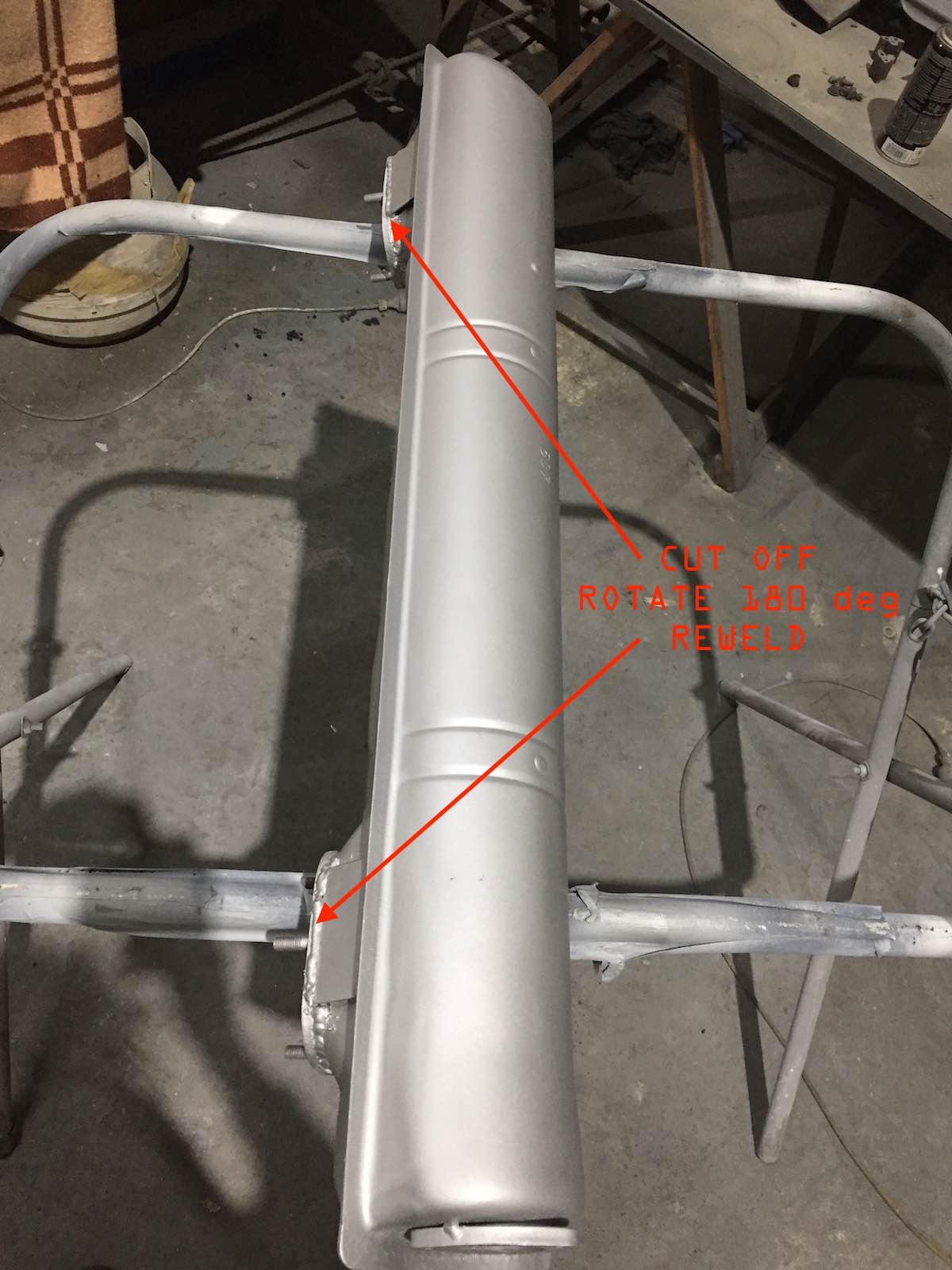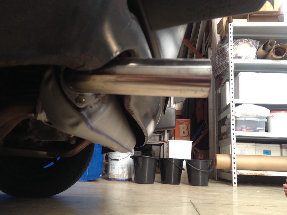 about 4 years ago. i did run it unmodified for a while before that with a modded tailpipe out the rhs just for convenience when i first had to change the muffler. (that was when the penny dropped about the rotated flanges. when we first looked at the muffler both my mechanic and i thought, aha its just a bus muffler. but then after getting hold of one and going to tfit it we both said, oh no its not quite a bus muffler. (IMG:style_emoticons/default/smile.gif) )then i took it off and did it properly a bit later on. the photos have reminded me we did a bit of reinforcing to kind of duplicate how the 914 mufflers have reinforcing plates from the flange back to the muffler body. we did "sturdy" plates but given the muffler pretty much hangs of those flanges even though the flanges are suspended from the hanger off the gearbox i figured i'd make sure it did not vibrate so much it would crack the flange welds down the track. it all works really well except the exhaust does sound very "tinny" until it warms up. i put that down to the SS heat exchangers in addition to this SS muffler. doesn't have that deeper tone that the mild steel exhaust systems have. |