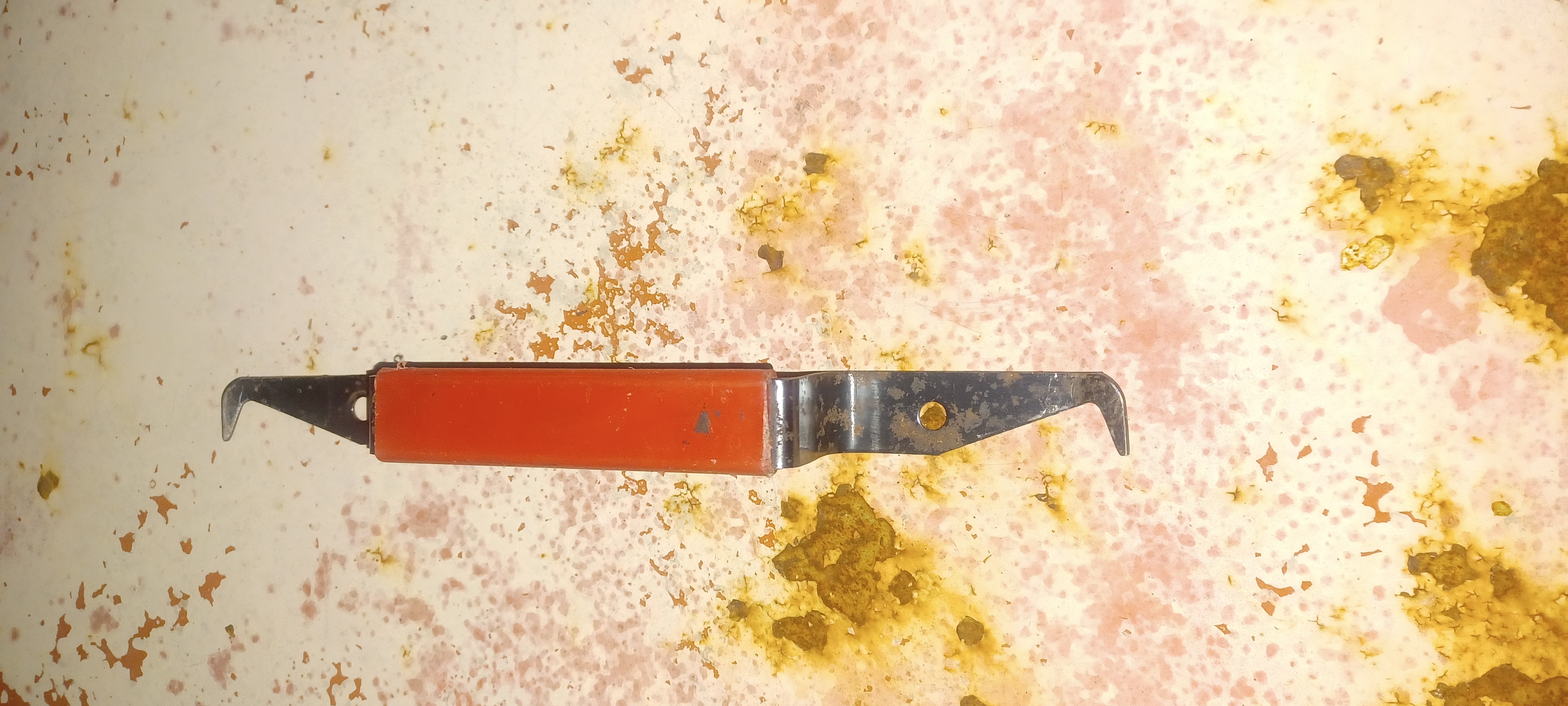 I bought this tool 30-40 years ago and recently dug it out of storage. IIRC, I bought it from a Mac Tool dealer and it was used for removal of trim and could be used to remove 914 windshield trim. I also think it used to have rubber or vinyl inserts where the holes in the handles are.