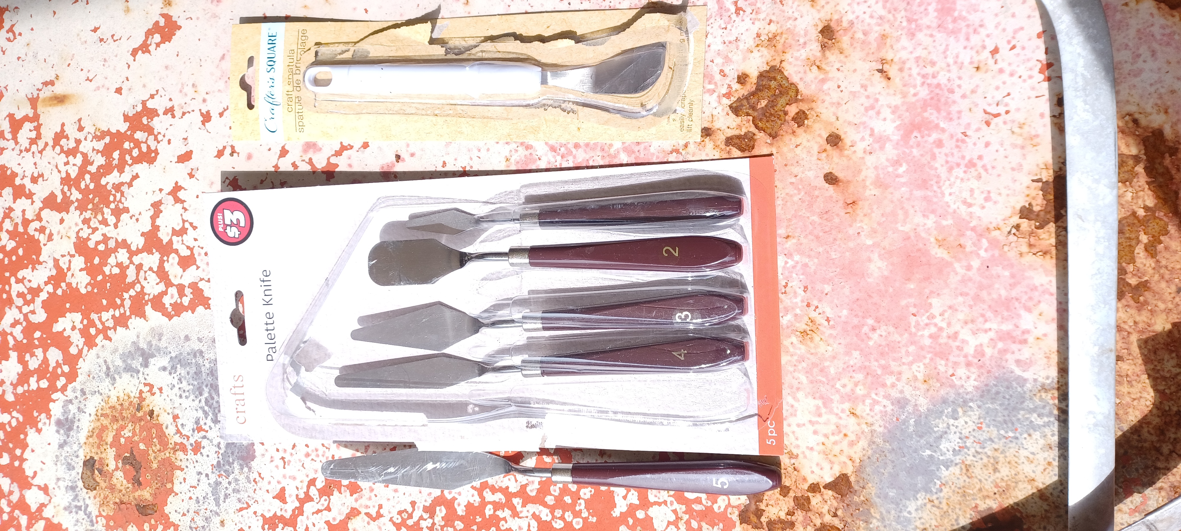 I successfully removed the windshield trims on both cars recently. I used the pallet knives and craft spatula I bought at Dollar Tree (DT) pictured below to get things started / loosened up a bit and went back with the larger trim tool to remove them the rest of the way.
