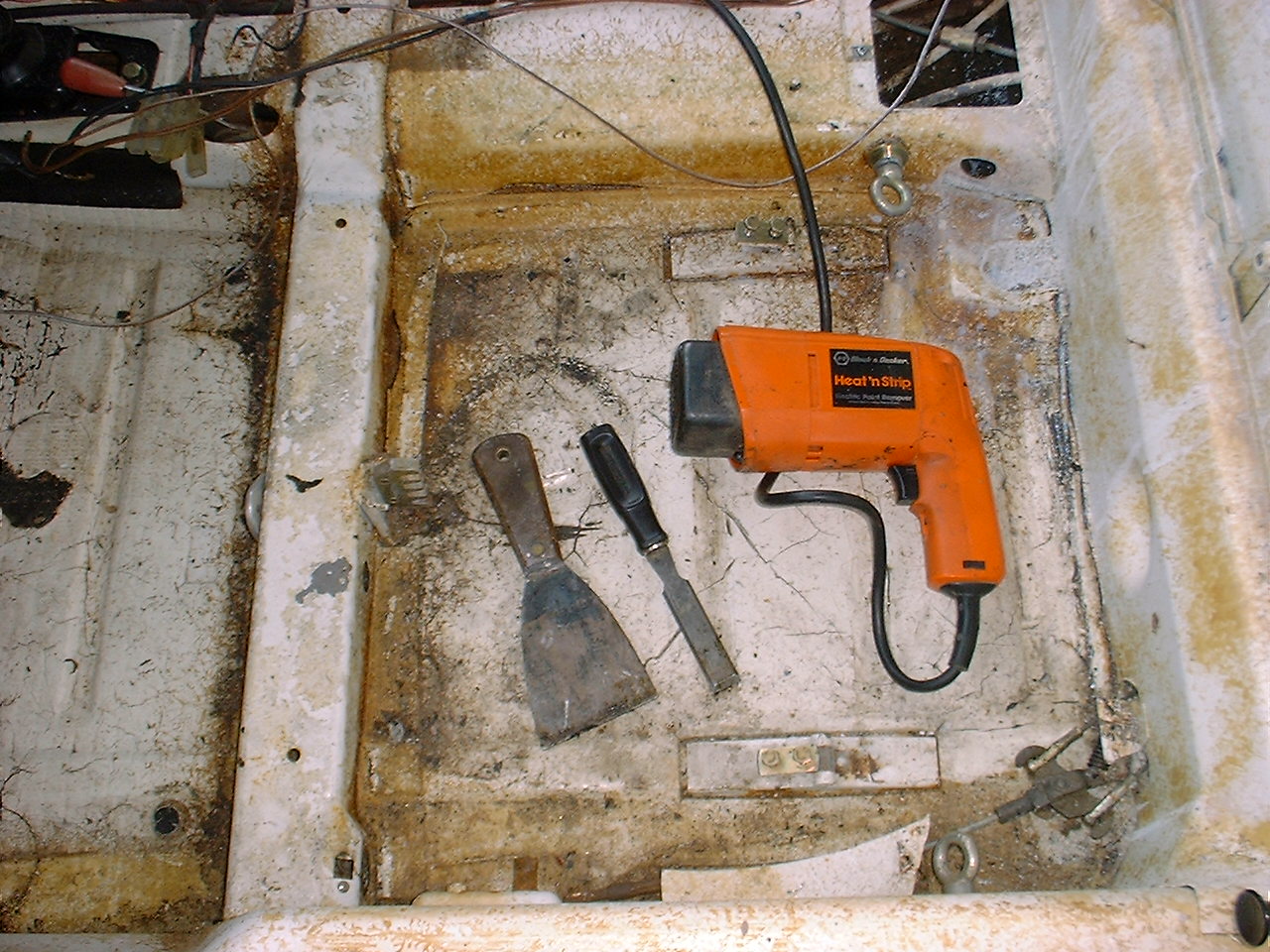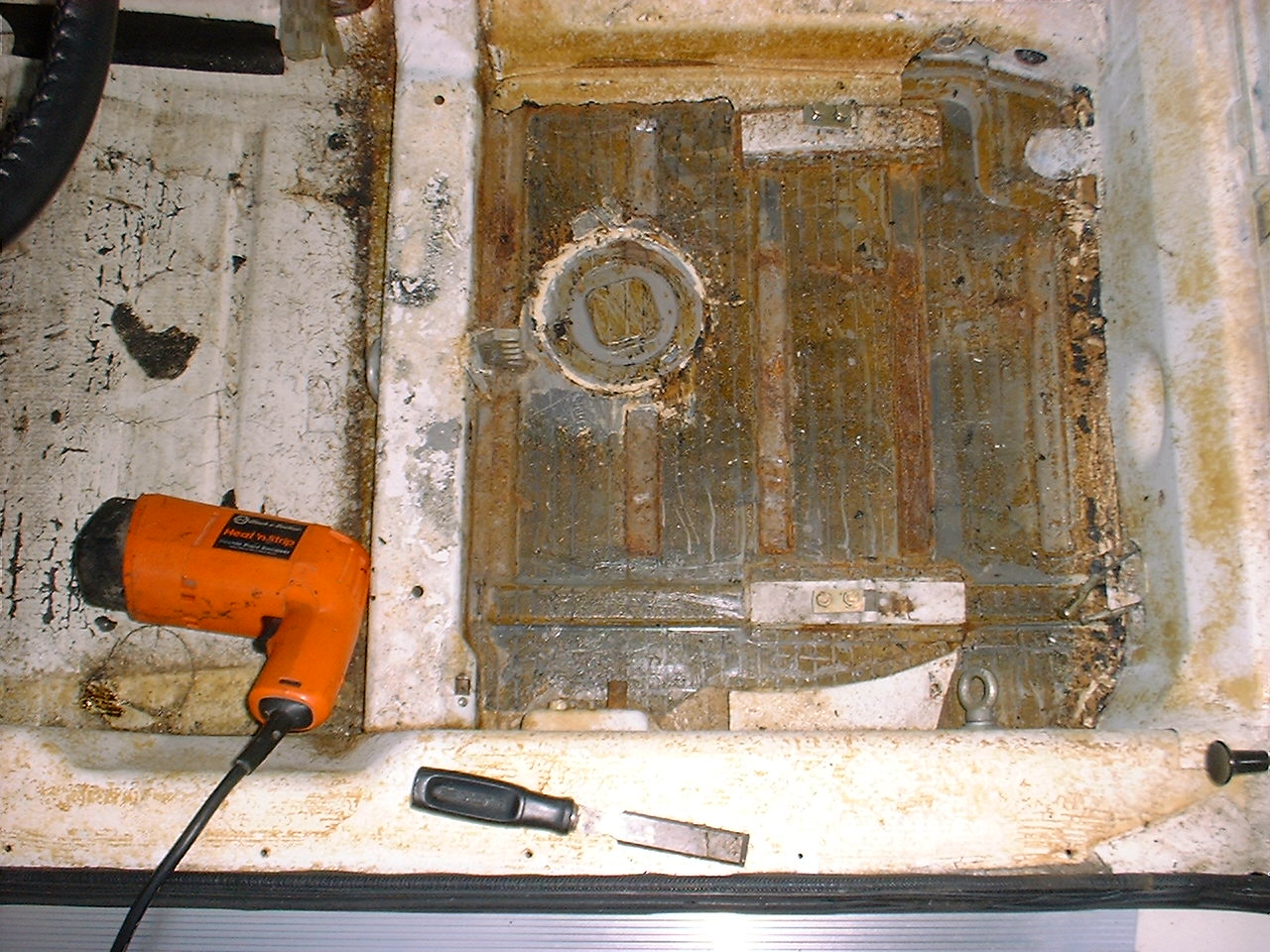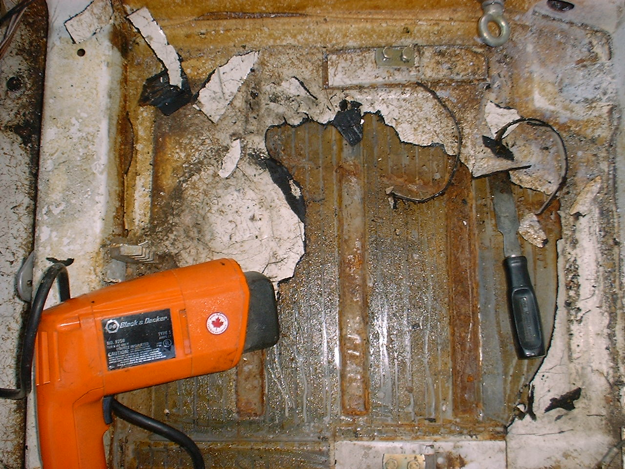 Assuming this stuff (tar like crap) and the underside is sound, why not leave things alone? It may have some sound dampening characteristics. It has some sound dampening characteristics, but removing it is a great way to remove weight, and you can use something lighter like dynamat instead. I didn't really notice a big difference when I removed the tar in my car and decided not to install any sound deadening material under the carpet. You also can't be sure if there's any rust underneath without removing the stuff first. Even if it looks ok, there's often some rust in areas, like around the pedal cluster or around the e-brake. |