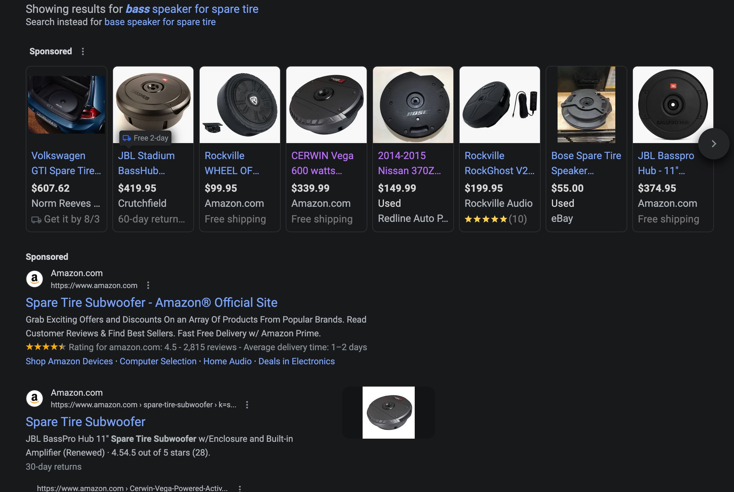 I have a great Sub Woofer custom set up done for me by PMB but if you just want boom,boom take a look at this kind of thing. Put it in your spare tire. You will need a amp in less one of these is set up with extra amp-- Boom, Boom to you. Bob B It’s a great way to loosen your hardware. (IMG:style_emoticons/default/smile.gif) (IMG:style_emoticons/default/smile.gif) (IMG:style_emoticons/default/smile.gif) |