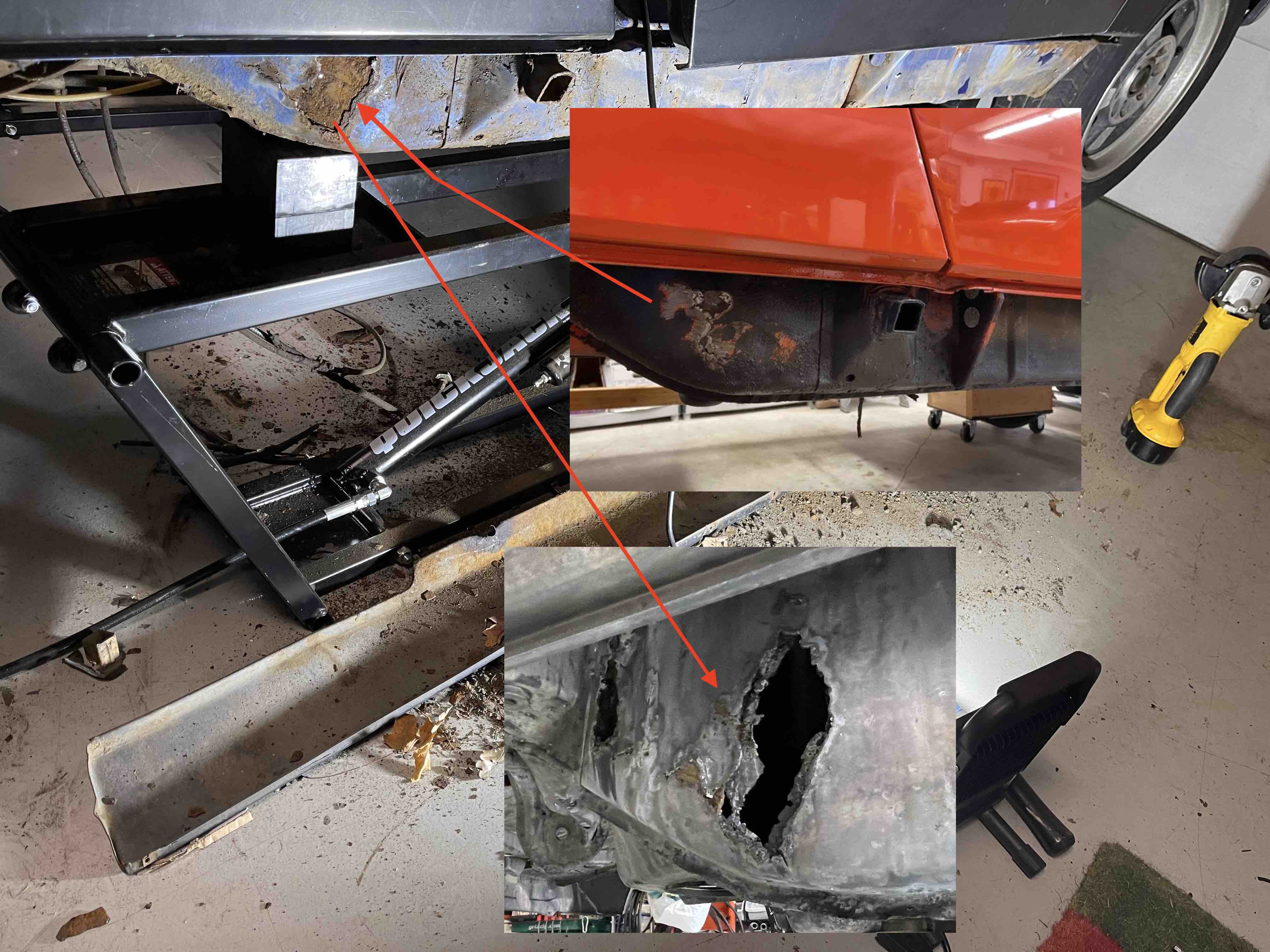 I agree with previous comments in that replacing the floor pan is really easy, but the long and likely the suspension mount are not. I’d consider that a $1500 car.