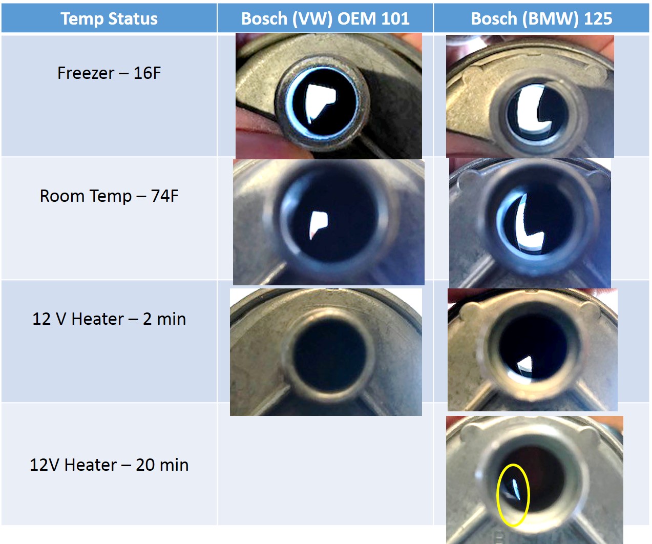 Here are the results of the AAR temp tests - OEM Bosch/VW 101 vs NOS Bosch/BMW 125 units:
