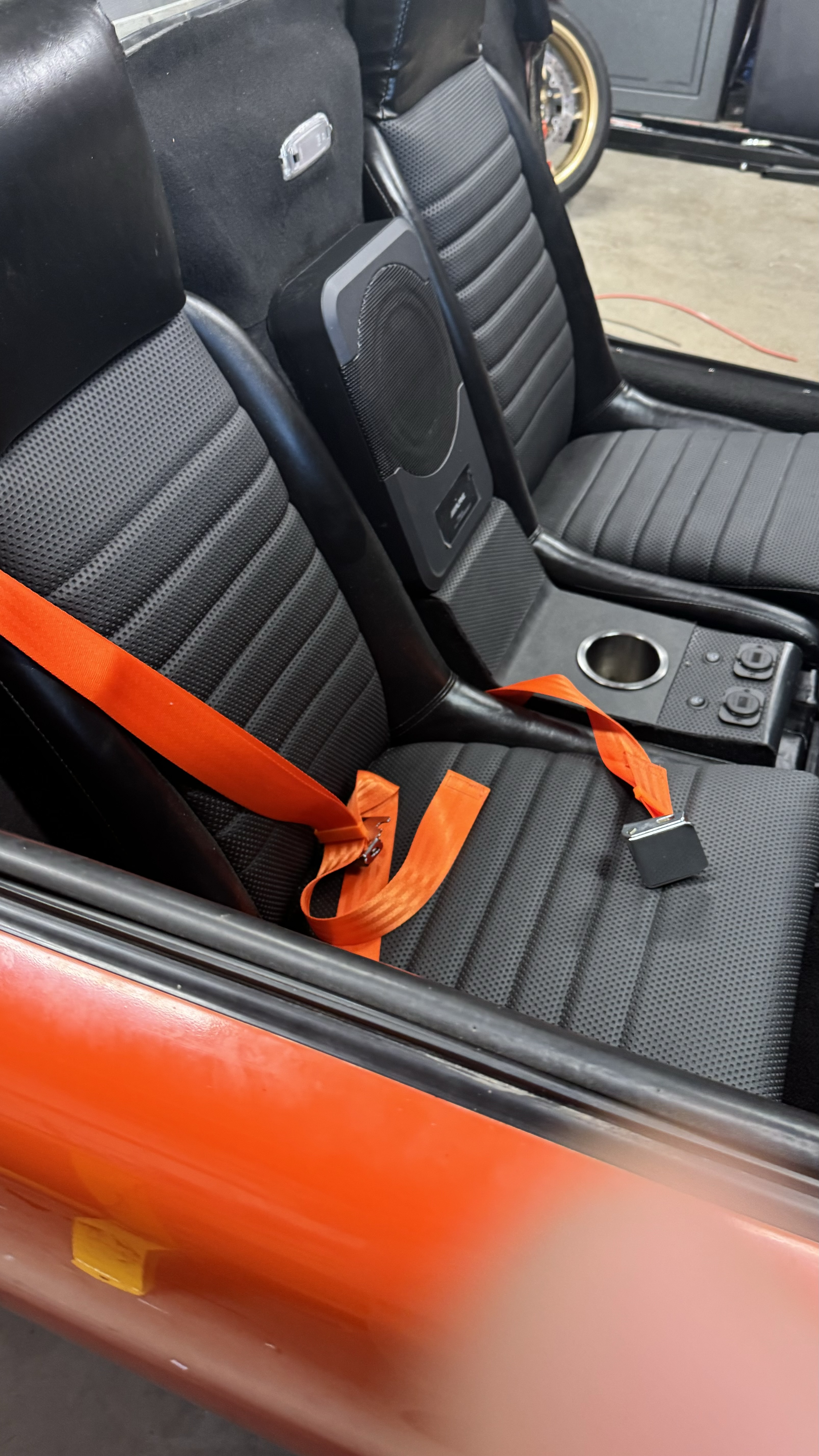 Had been contemplating a stereo upgrade. Had read all the threads. Wanted something that would require minimal disturbance from stock and be unobtrusive Had already committed to a period correct Blau Frankfurt with the digital conversion. I knew that the Infinity Kappas were a good solution in the original speaker housings so went with those. In looking for a small powered sub I found the Pioneer TS WX010A. Chose it because it is about the smallest one out there and is a small 50 watt amp that requires no heavy wiring Figured it’s small size would provide a variety of mounting options without have to cut up any interior stuff. What I did not know was how well it would fit. After taking out the foam filler block, I found that This thing fits in the recess in the passenger footwell like it was designed to be there. See pix below I held it into place using the double face tape provided with the sub. This tape also nicely isolates the speaker so it does not rattle against the firewall/floor structure. Once the foam block is trimmed and put back into place the carpet covers it all and it essentially is undetectable. The thing has great adjustability in gain and frequency. Both are turned way down and provides all the bass you could ever want in our small cabin. Paired with the Kappas it sounds great Overall a very sanitary installation and a pleasing ( to me anyway) solution. @gereed75 thanks for sharing this solution last August. I ordered this sub online from Walmart for $180 and received it in the mail today. I have a bluetooth receiver hidden under my dash and it's wired to the two speakers in the stock location. It sounds like when you upgraded/converted your Blaupunkt to digital, you also added 2 add'l speaker outputs? So you ran 2 outputs to the speakers in the stock location and then you ran the other 2 outputs to an RCA converter which you plugged into your sub? I'm trying to figure out how would I run my only two speaker outputs on my bluetooth receiver under the dash to my 2 speakers AND the sub. Do I need to put a fork in right speaker line so that line would feed the passenger speaker AND the sub? TIA |