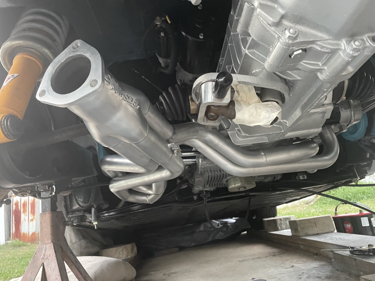 I bet it does sound good, they tune those 911 cans to flow nicely. I looked at those Tangerine eco systems and they are top notch. I just didn’t want to spend that coin on something I knew I could build myself, and I also wanted something different. I wanted a center mounted exit from under the ground effects. I Put a Borla exhaust on my Jeep last year, and I love the sound that it creates now. Hoping for that same stored energy low tone vibe in the 914. My car decided to share another story with me as I was refinishing the bumpers. I bought a set of those 914 rubber driving light grilles, and adding driving lights to the car. After pulling the front one off, I noticed some bondo work. I can’t leave anything alone with my curios nature, so grinding away I went. Glad I did, it was really starting to corrode and rust under all that unnecessary filler. I can’t wait to hear it run, but I want to finish up the car and then start it, so I can go directly to the fun! |