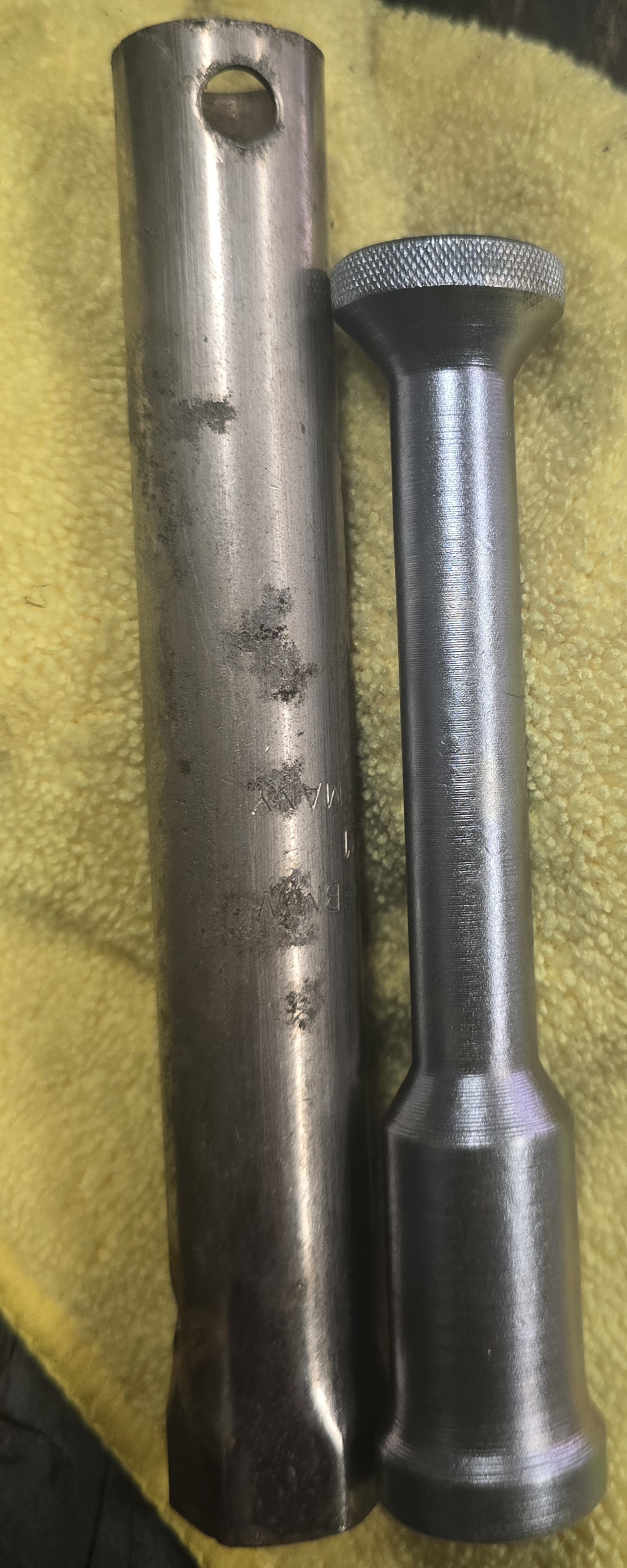 This is a BMW spark plug tool next to a 911 sparl plug tool.