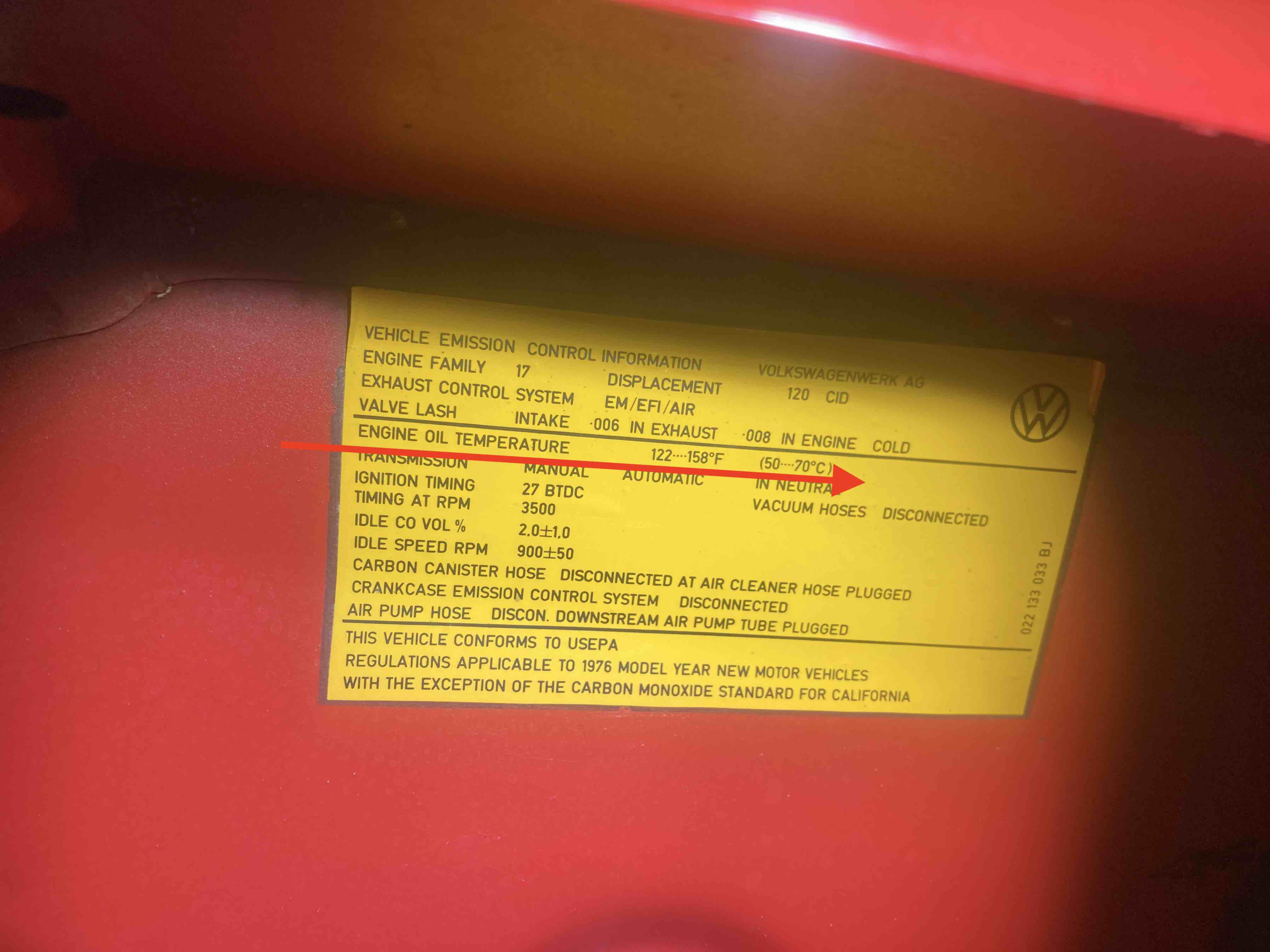 Not only did I fail but they refused to perform the check after I had spoke to them on 3 different occasions . I knew I was in trouble after pulling the car into the bay and the technician started eyeballing my car and said "What is it?" . I showed him the yellow USEPA sticker ,the doorsill Non-Catalyst sticker and my paper work .He replied "In 25 years of being a smog test technician he had never seen a car like this " . I replied well it's 50years old so maybe not . He then asked where the timing mark was after reading the sticker . I said it's under the air injection pump and they would have to remove it to see it ( well actually it doesn't show up and I need to use the flywheel mark. I told him I didn't have tools with me to remove the air cleaner and all the associated hosing . Now I checked with them before hand and they had a dyno and said no problem . Then he started backpedaling , Well I need to remove the cap on your fuel tank and pressure test it , and I will need to remove your air cleaner to check the timing ( didn't matter I had already told him I timed it to 27degrees BTDC @3500 RPM before I brought it too them and installed all the required smog /fuel injection equipment . He then told me I needed to take it somewhere else. (IMG:style_emoticons/default/sad.gif) So if anyone can recommend a qualified Smog shop near me (I live in Huntington Beach) I would appreciate it . Now related to my other post about high oil temperature . I was looking at the USEPA in the engine compartment and saw something interesting about the oil temperature. Is this the testing temperature for my smog test ? |