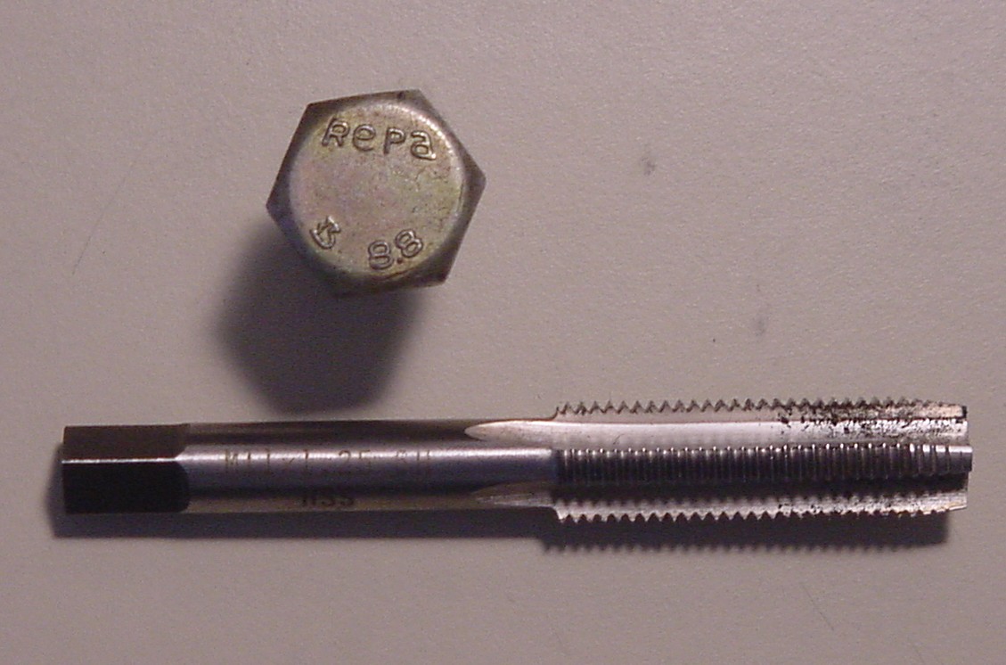 i donno if a 7/16" fastener would fit into an 11mm hole, but i bet the smaller 11mm would fit a 7/16". 20 tpi == 1,27mm pitch. i bet there's enough tolerance in the standard thread profiles that a 0,02mm difference is insignificant; especially when there's a small diametric difference. i've used my 20 tpi thread gage on the factory fastener and i can't see a difference - 0,02mm is probably too small to eyeball with a cheap gauge. i see no reason a bolt can't have both a metric 8,8 strength rating and nonstandard (i.e. American) threads. unlike most "generic" hardware shown in the ETKA (which carry 'N' or 999 numbers, typically) all the restraint fasteners i've seen (i checked several years and models) use 901 numbers. IOW - they do not seem to be 'standard' fasteners. |