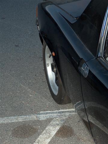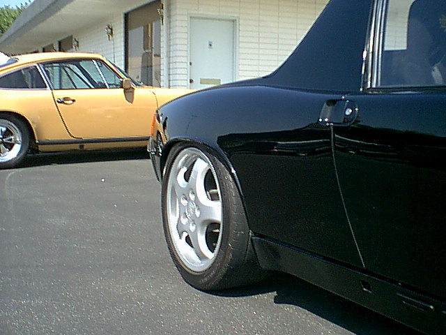 That black car is the car that I tried to model my subtle flares after (though I think my body guy was a little more subtle than I had intended). Here's 8" wide Fuchs with 225/45-15 tires squeezed under there.