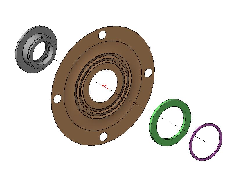 Jeff B. and I did have some offline discussions during this time. Originally, I had planned on designing the boss on the diaphragm so that it would attach to the diaphragm with a threaded nut. So I was going to try and source an appropriate sized nut to do this. But Jeff suggested that we just replicate the original design rather than trying for the nut approach. I'm fine with that. But the diaphragm that Jeff sent me is a good one and he doesn't want it destroyed. And in the assembled state, it is very difficult for me to tell which parts are which in the pressed-together state. Here is what I wrote to Jeff regarding this: With the idea of replicating the original, it is very difficult for me to tell how it was assembled without cutting one apart. There are 4 'steps' to the center boss where the retainer is installed. It is difficult for me to tell which part is what, and if the retainer is simply a retaining ring that has been pressed on, or if it is a part that is highly deformed when pressed on (as in, the retainer starts out as a ring, but ends up with a step in it). Anyway, take a look at the images I have attached. This is one way it could have gone together. It involves four parts: the diaphragm, the boss, a washer, and the retainer. In this case, the retainer is just pressed into place (not deformed). Here is the exploded view I sent him: Attached thumbnail(s)