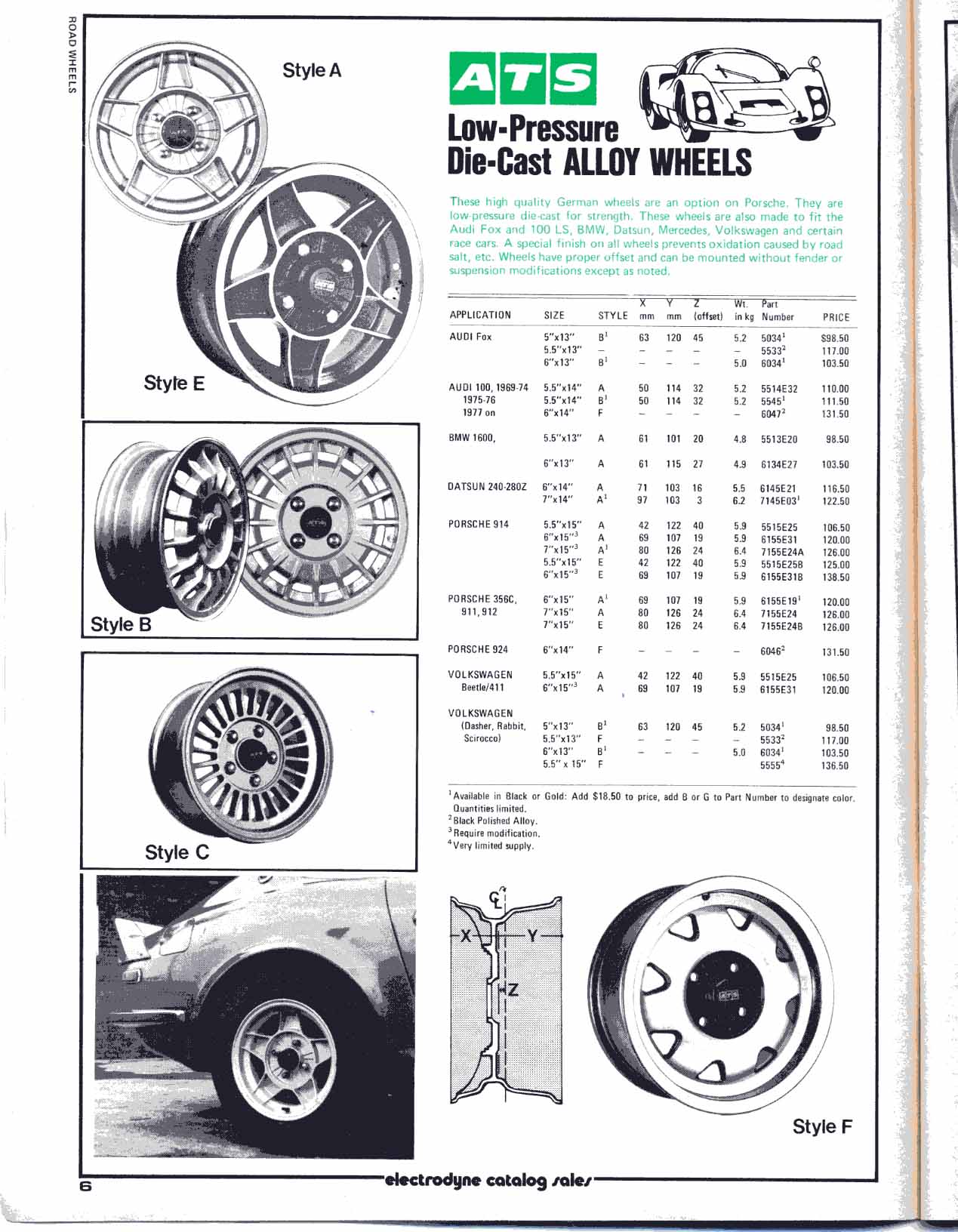 Hi Ferg, we talk about the four lugs. That ATS makes 6" in five lug is not a theme that's clear. Wilco Since they were from the same cast, I thought it would be helpful. here is a page taken from the 4 bolt wheel thread, with everthing one would want to know about early ATS wheels, clearly shows 15x6's are real. Ferg Attached thumbnail(s)