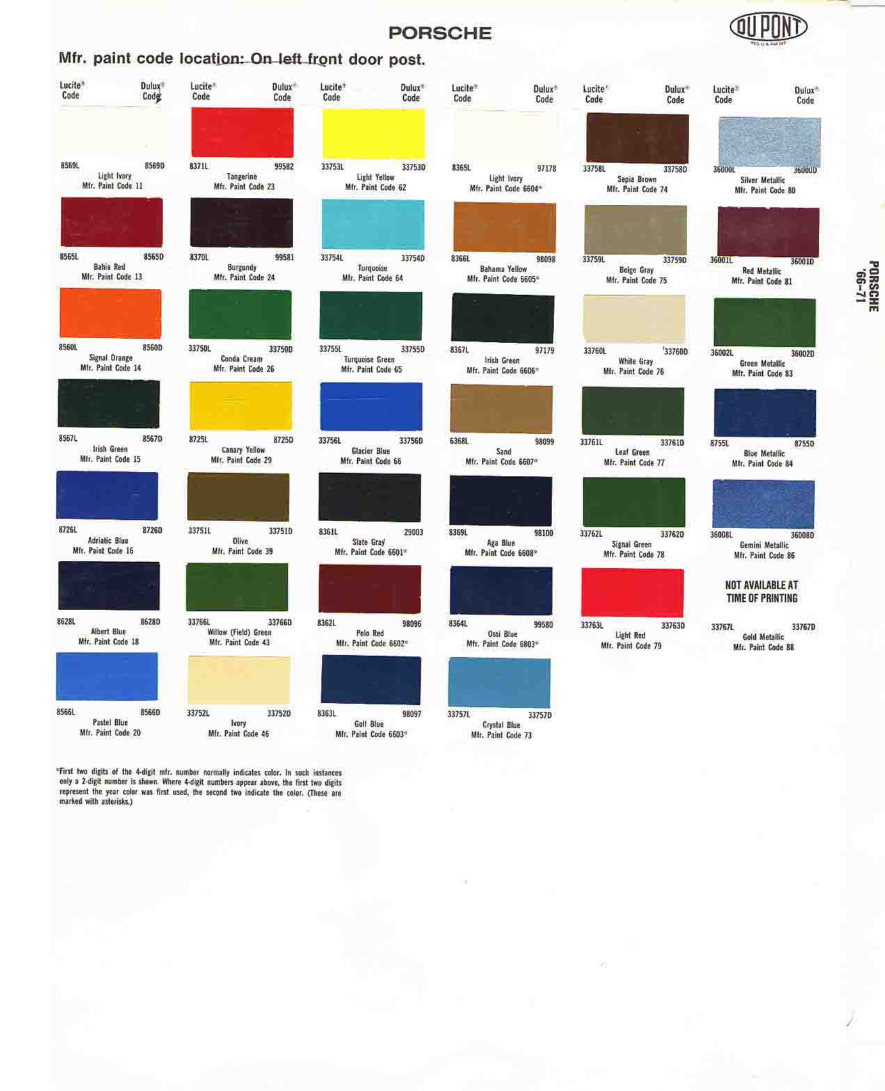 searching for my paint code. It was listed under 911, but interestingly enough the color of my first 356 is on there as well.
