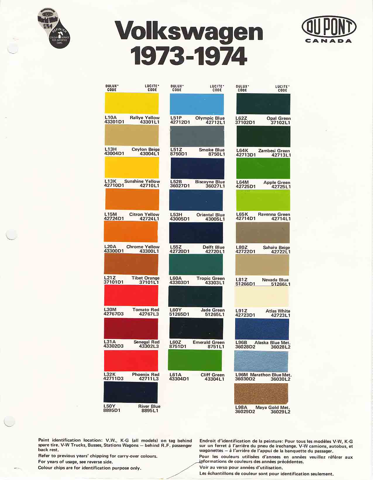 Duponts website has a historic color chip section.