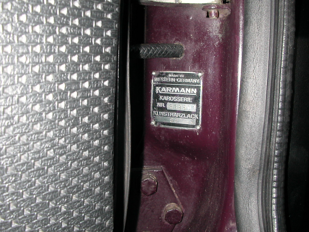This is the Karmann badge on the drivers door hinge post.