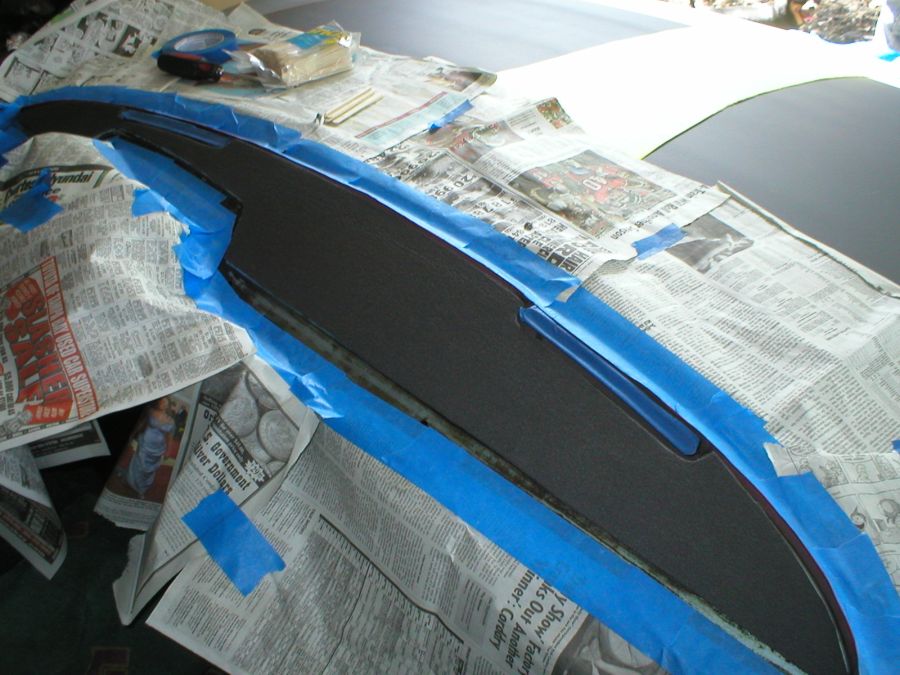 ![]() I let the front section dry a little, then I glued the back section. After making certain the vinyl was completely down and smooth, I placed the dash top on it to hold everything down.... I'll check tomorrow to make sure it stays in place... ![]() -- Rob |