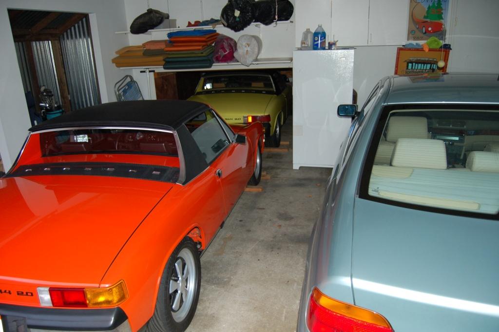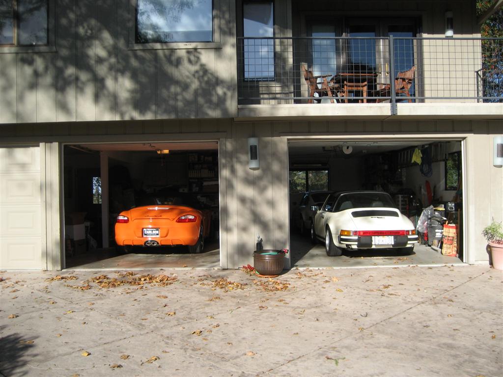 We have a 4 car garage and 5 cars. The garage on the right with the white 911 is two deep. All cars except the 914 are ours. Wife thinks 914's hate her. All 4 Porsches and the subi are daily drivers. When one of us leaves we take which ever one we want, although the new Boxster is is high demand right now. Wife loves to drive Porsches and is good at it. The only real drawback to this plan is that when a car needs to be washed its mine, so sometimes they stay dirty for a while. |