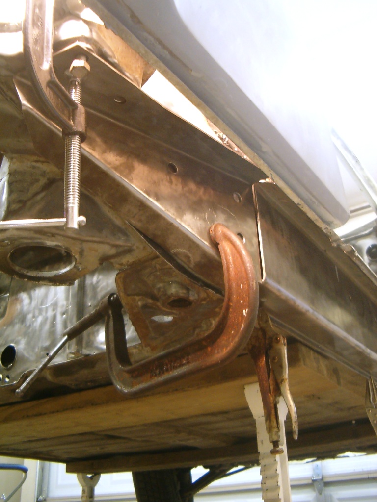 Unfortunately it looks like "the turd" has a sag problem on the drivers side. I think there's rust inside the long but it hasn't made it's way through to the outside. The bottom seam flexes a little. I need something to "clamshell" the rear portion starting about 10" in front of the jack point and extending back to where the long curves up. Andys came through with a couple of pieces of stock that might work. I'm going to spend the day tomorrow cutting, grinding & welding.