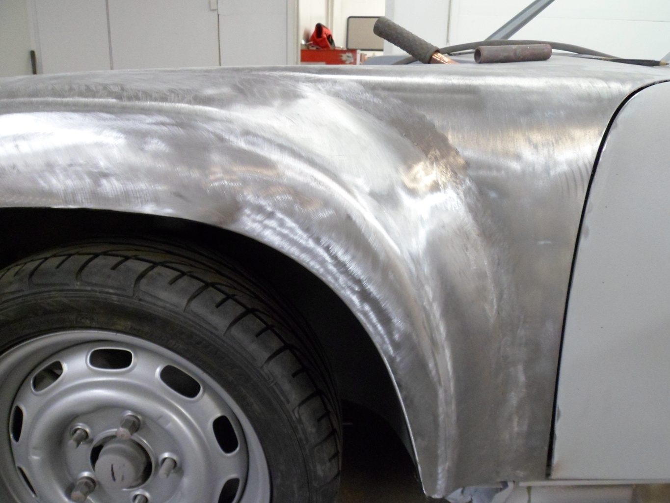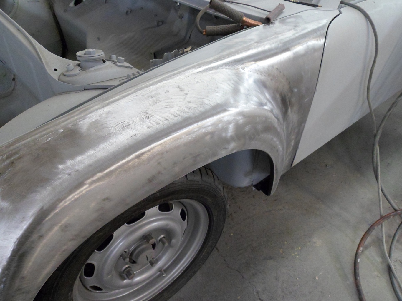 looking good! what did you grind the fender welding down with? flapper wheel? what grit? (i'll be embarking on this task shortly...) Thanks Guy's Disk to flapper wheel 36 grit. No matter how smooth it is you'll still need a thin coat of filler to blend it perfect Attached thumbnail(s) |