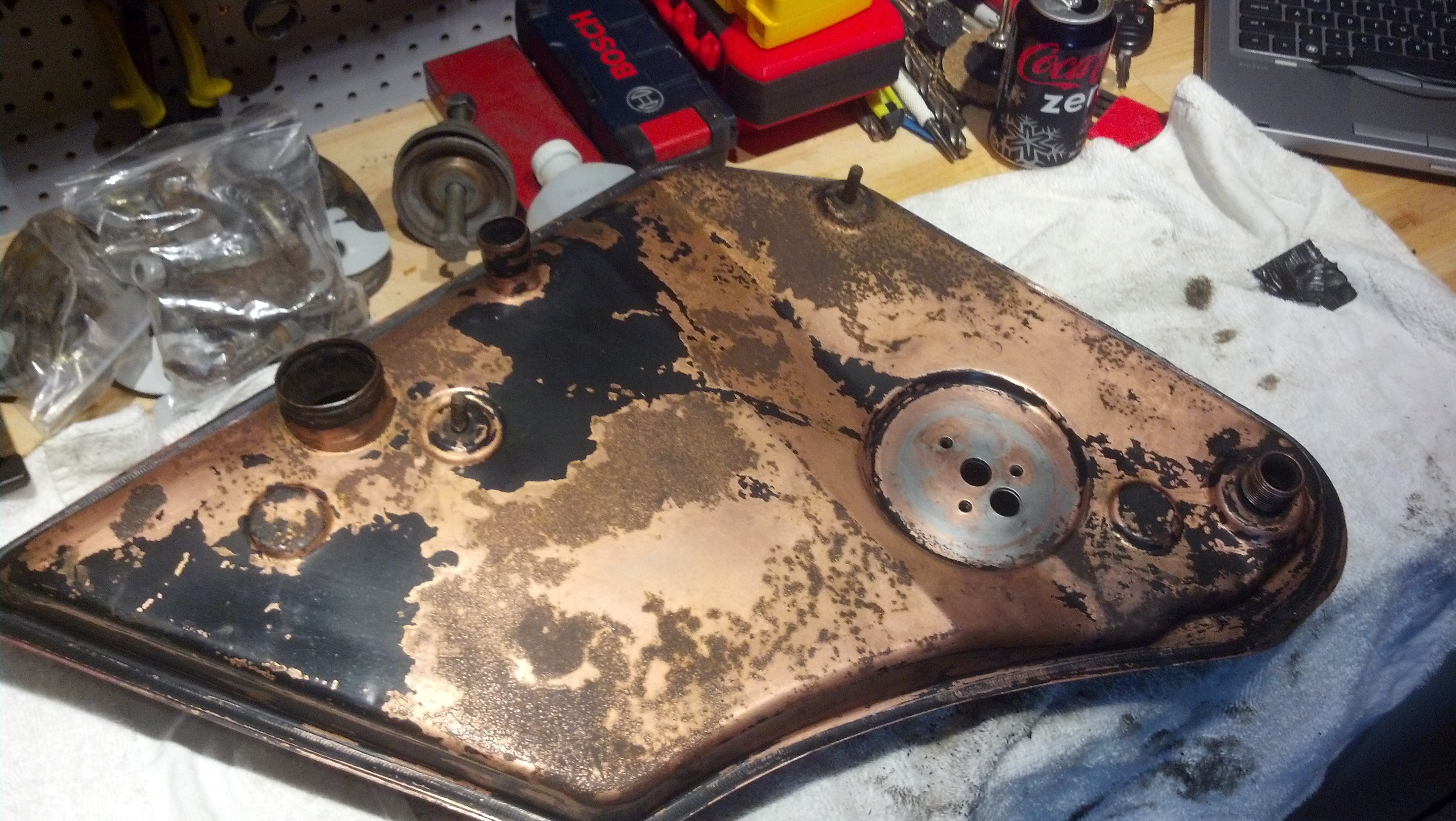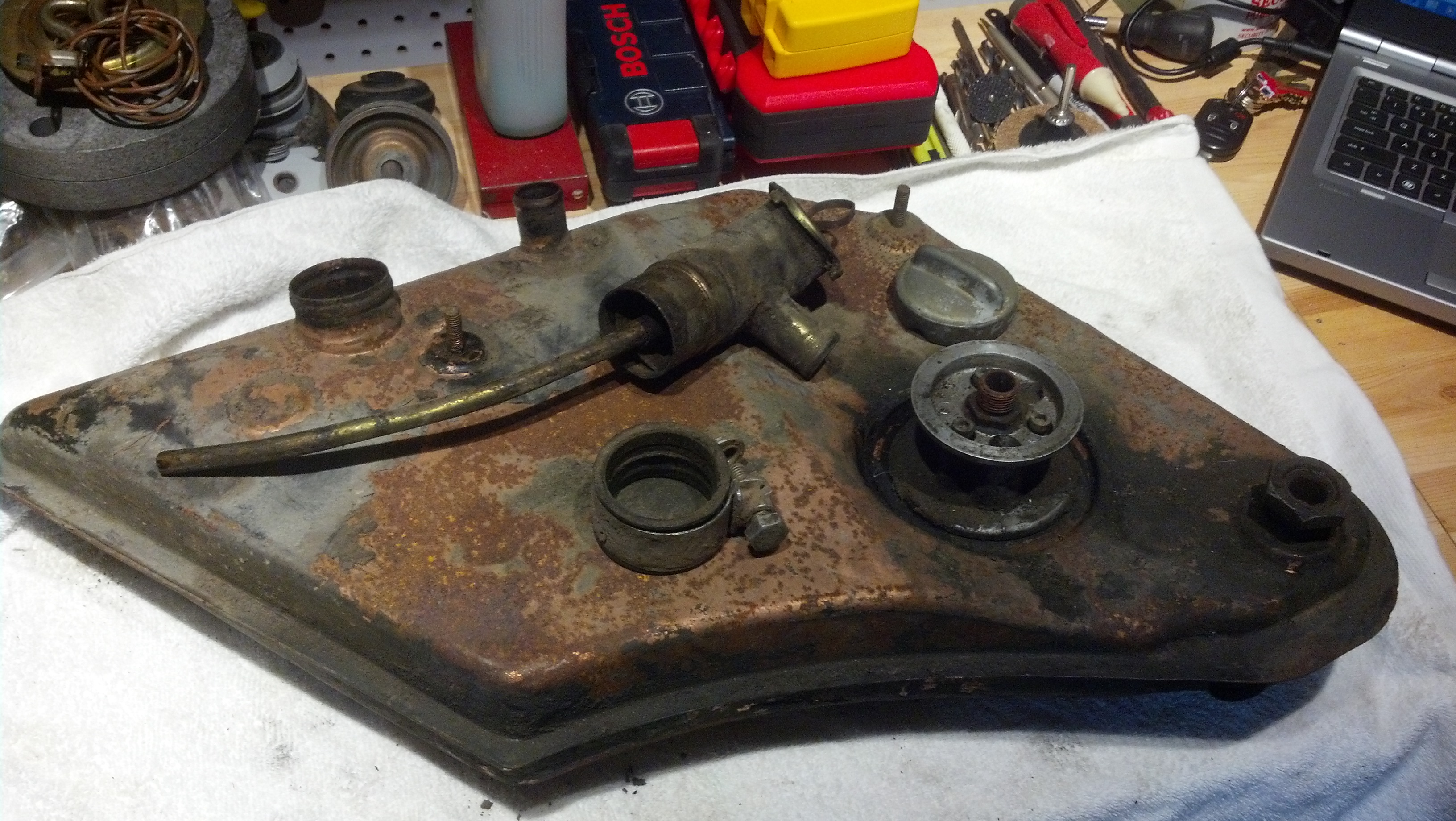 \ I'm thinking Feb/Mar at this point. I don't want to rush anything, I enjoy the reassembly process and want to get it as perfect as I can. Cleaned the oil tank up today and its off to get flushed out and striped for it's copper dip Attached thumbnail(s) |
