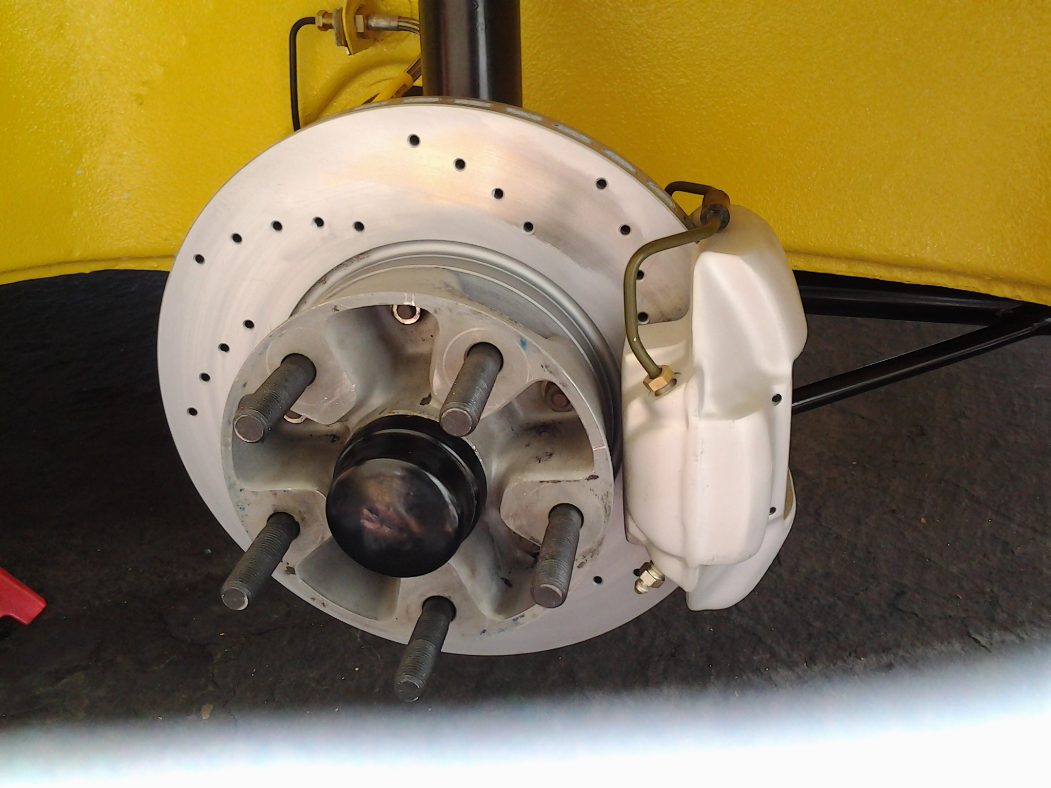 Andy- Very nice. Did you grind down the trailing arm reinforcements for clearance for the GT calipers or did you space the rotor outward? My car will stay narrow-bodied so I can't afford to space the rotor outward.