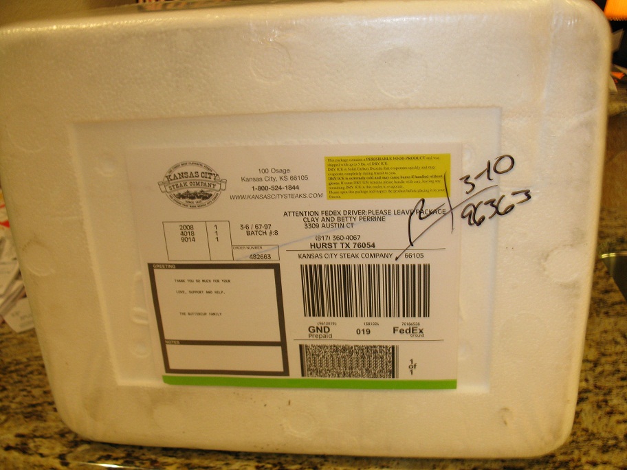 MMMMMMMM...... Cow! (IMG:style_emoticons/default/chowtime.gif) Mary, Thank you for the gift. But it was unnecessary. You owe us nothing.... it was our honor and privilege to be allowed to help you out. Thank you for a wonderful weekend in snowy, cold Kansas. I actually hate snow and hate being cold, but I would do that again in a heartbeat. It was worth it. Again, Thank You, but please.. no more gifts.... I now feel guilty. |