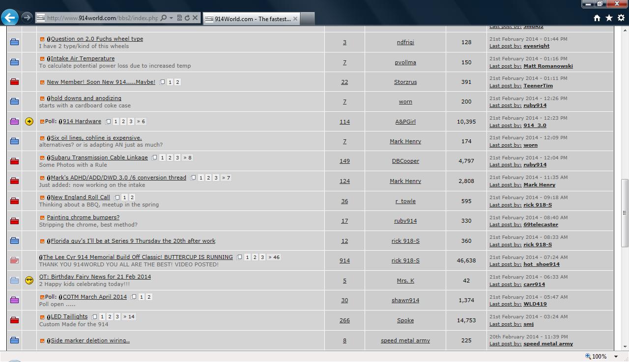 914World.com is the fastest growing online 914 community! We have it all, classifieds, events, forums, vendors, parts, autocross, racing, technical articles, events calendar, newsletter, restoration, gallery, archives, history and more for your Porsche 914 ... |