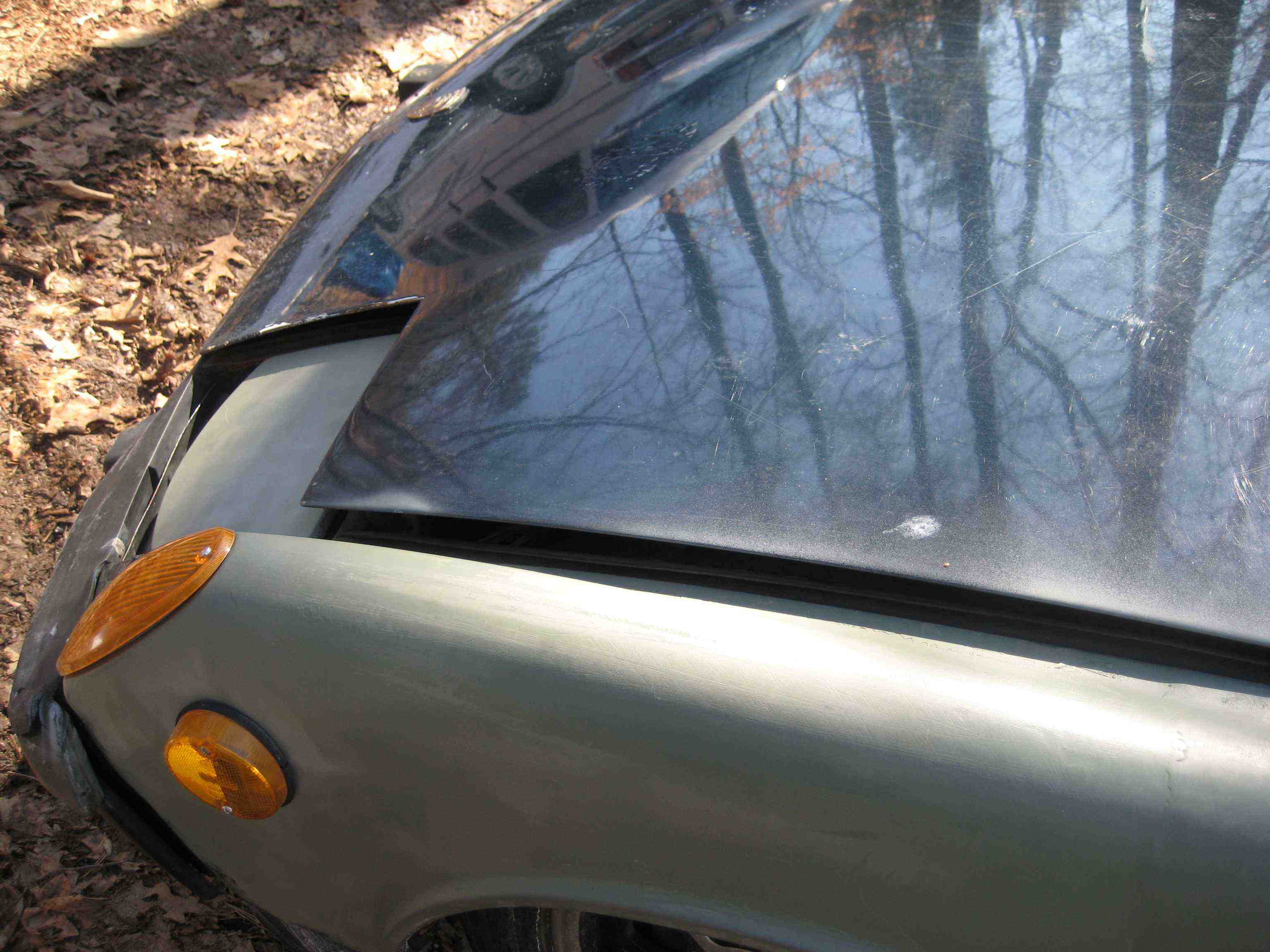 Cell phone pics. I actually hit the pole at an angle so it hit the bumper and then the bumperette caught on the pole swung the back of the car around. It might not look that bad from the pictures but it crumpled the front end a bit.