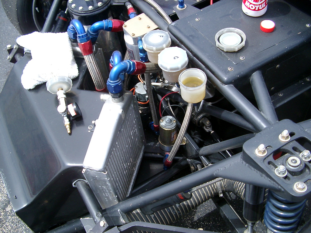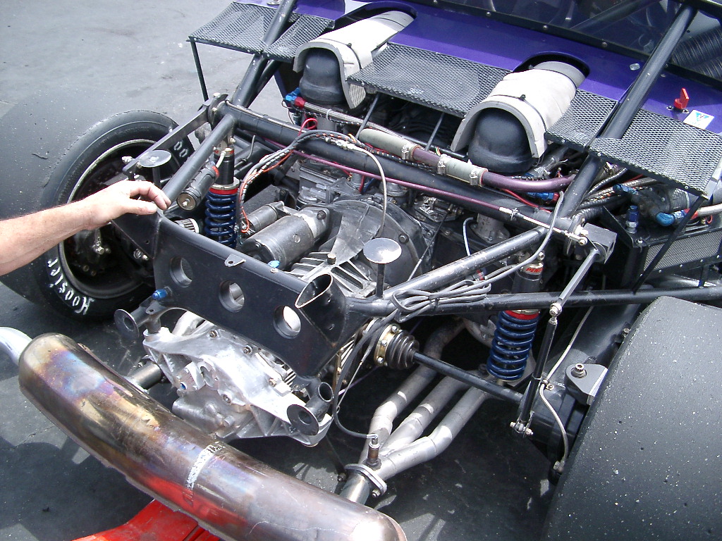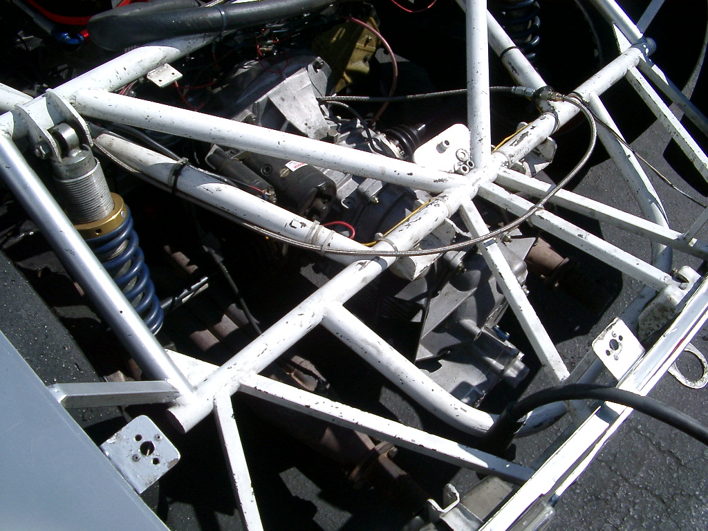 I was thinking of yours when I was working on this Ury, it is amazing how much more complicated things get when you cut off the rear frame rails. ... complicated??? that photo should simplify things for you based on your drawings... he doesn't have half ( if any) of the triangle bracing you've implemented in your cad drawing. however those sharidon bodied 914 photos Andy put up are when you have a 3.6 track monster and probably need the extra bracing... you don't need to re-engineer the wheel, these cars have been around for some time now. take a tip from the track guys. if you can find some photos of that otto's venice guys' car, he knows his stuff too. did you know he has the fastest time at the streets? last time i stuck my head underneath the rear fender there were a bunch of Ace Hardware washers off-setting he rear 930 calipers to the rotor. its not rocket science mate, lots of these guys are running with early 1900's lotus logic. |