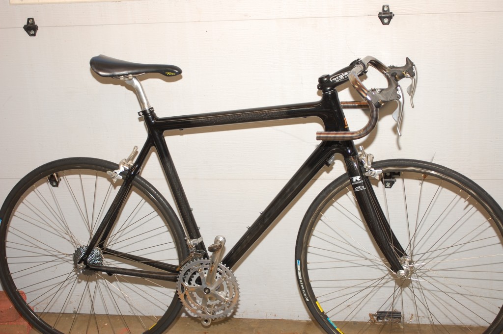 Titanium, baby! It's like magic. There is a beutiful Ti Lemond frame on Ebay with a very nice carbon fork that I would love to buy but I am broke and I think it will go for what it's worth ~ $2000. I landed a nice frame and a Reynolds ouzo pro all carbon fork for pennies on the dollar. Now I need to get a crankset and I am good to go. |