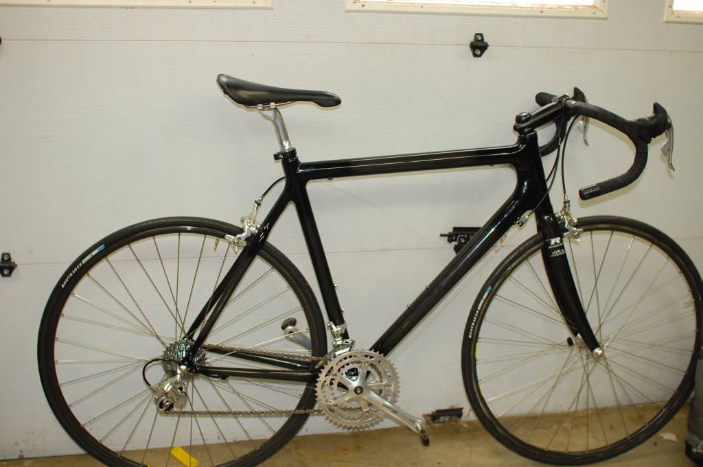 Looks nice!! i have been lusting after a CF frame for a couple of years. I figure if I ever lose some of the weight i need to lose, I will treat my self to a nice bike. I have decent components (groupo looks a lot liek yours) but a new frame would be fantastic. Until then, as my old boss would say, it is like feeding strawbverries to a pig!